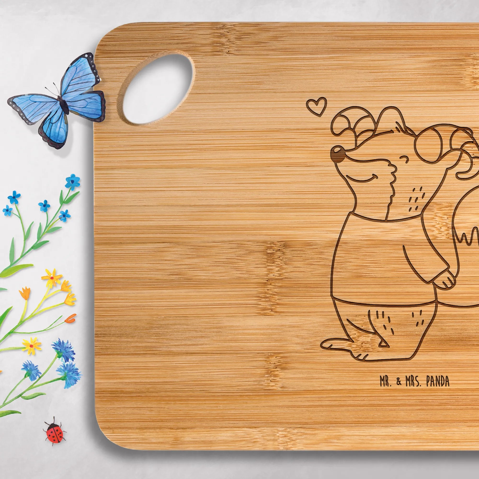 Hol dir jetzt dein liebevoll graviertes Schneidebrett von Mr. & Mrs. Panda – praktische Größe, zeitloses Design, Freude beim Zubereiten!