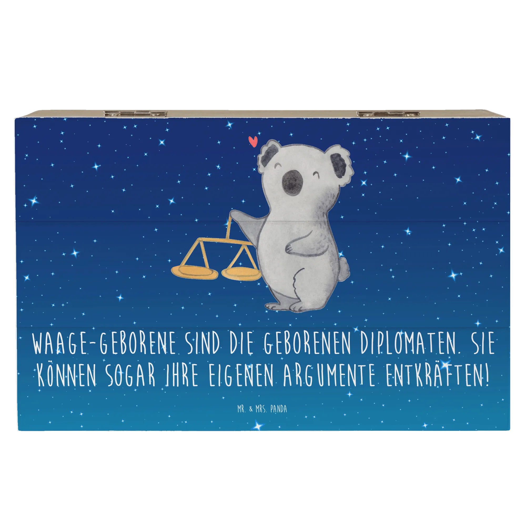 Entdecke die wunderschöne Holzkiste mit dem Motiv der Waage von Mr. & Mrs. Panda – das perfekte Geschenk für alle Waage-Geborenen!