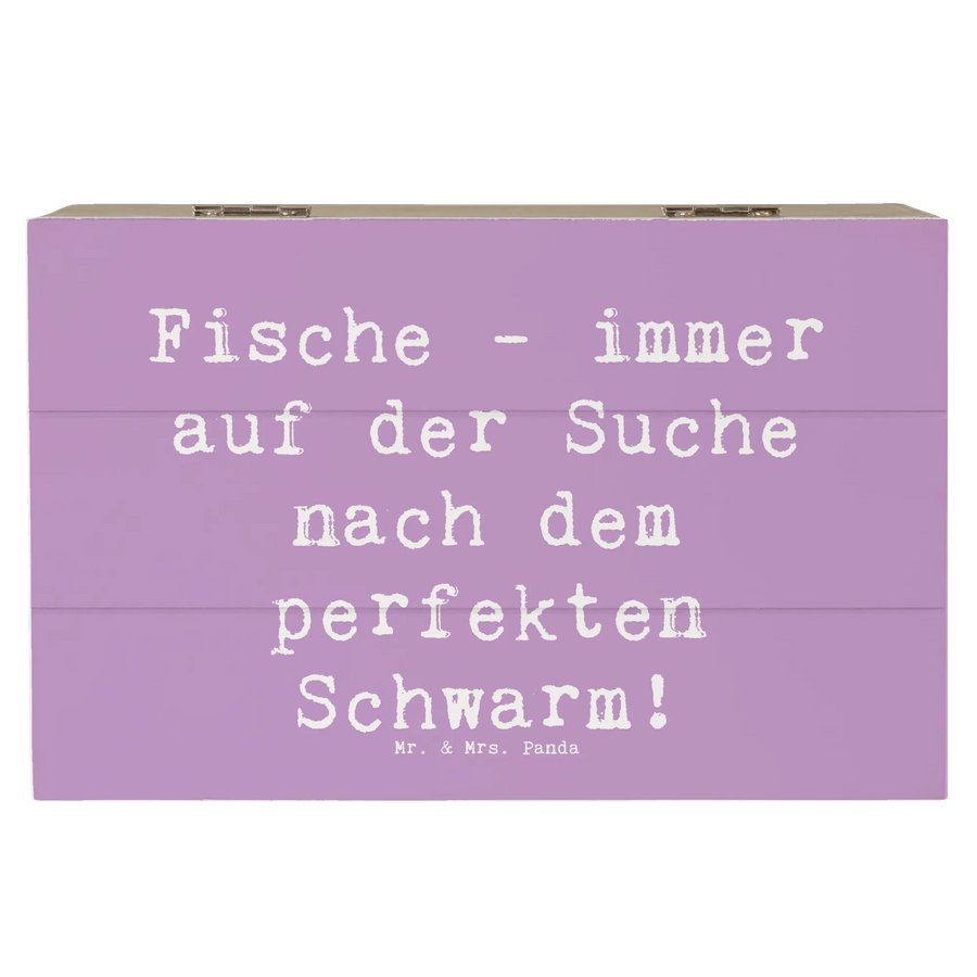 Du suchst nach dem perfekten Geschenk für einen Fisch-Geborenen? Dann ist die Holzkiste von Mr. & Mrs. Panda genau das Richtige! Mit dem liebevollen Spruch „Fische - immer auf der Suche nach dem perfekten Schwarm!“ ist diese Kiste nicht nur ein wunderschöner Blickfang, sondern auch eine wunderbare Aufbewahrung für all die kostbaren Erinnerungen.