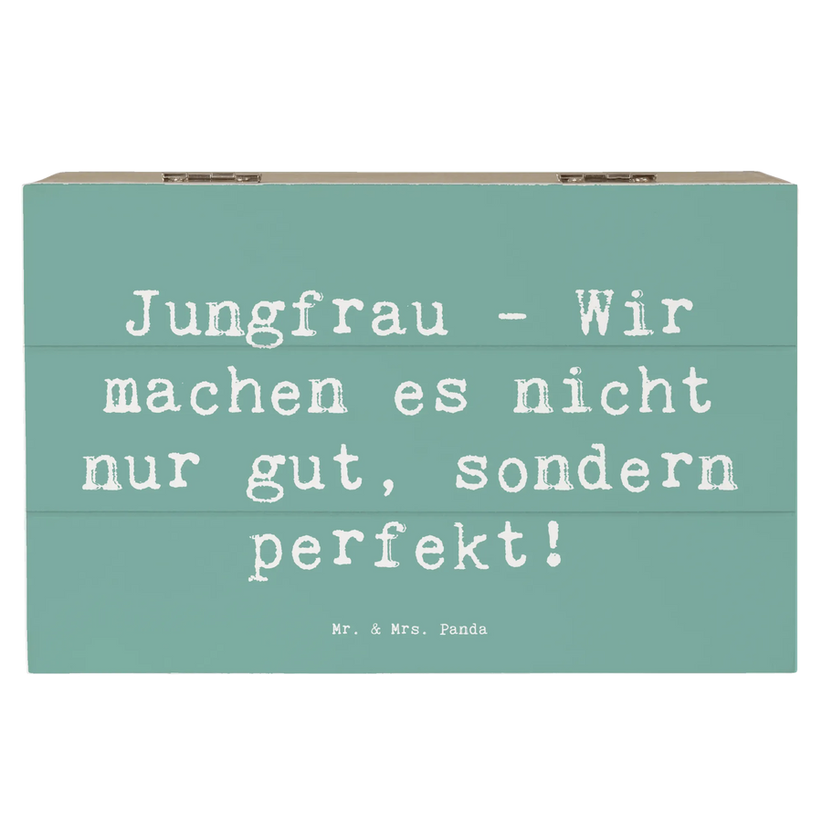 Holzkiste Spruch Jungfrau Perfektion - 19 x 12 cm - Meeresbrise
