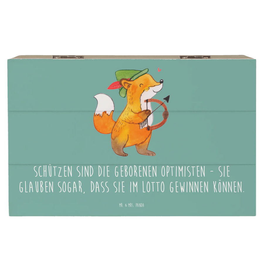 Der Schütze ist das ideale Sternzeichen für Optimisten. "Schützen sind die geborenen Optimisten - sie glauben sogar, dass sie im Lotto gewinnen können." Dieser schöne Spruch ziert die Kiste und erinnert stets daran, optimistisch in die Zukunft zu blicken.