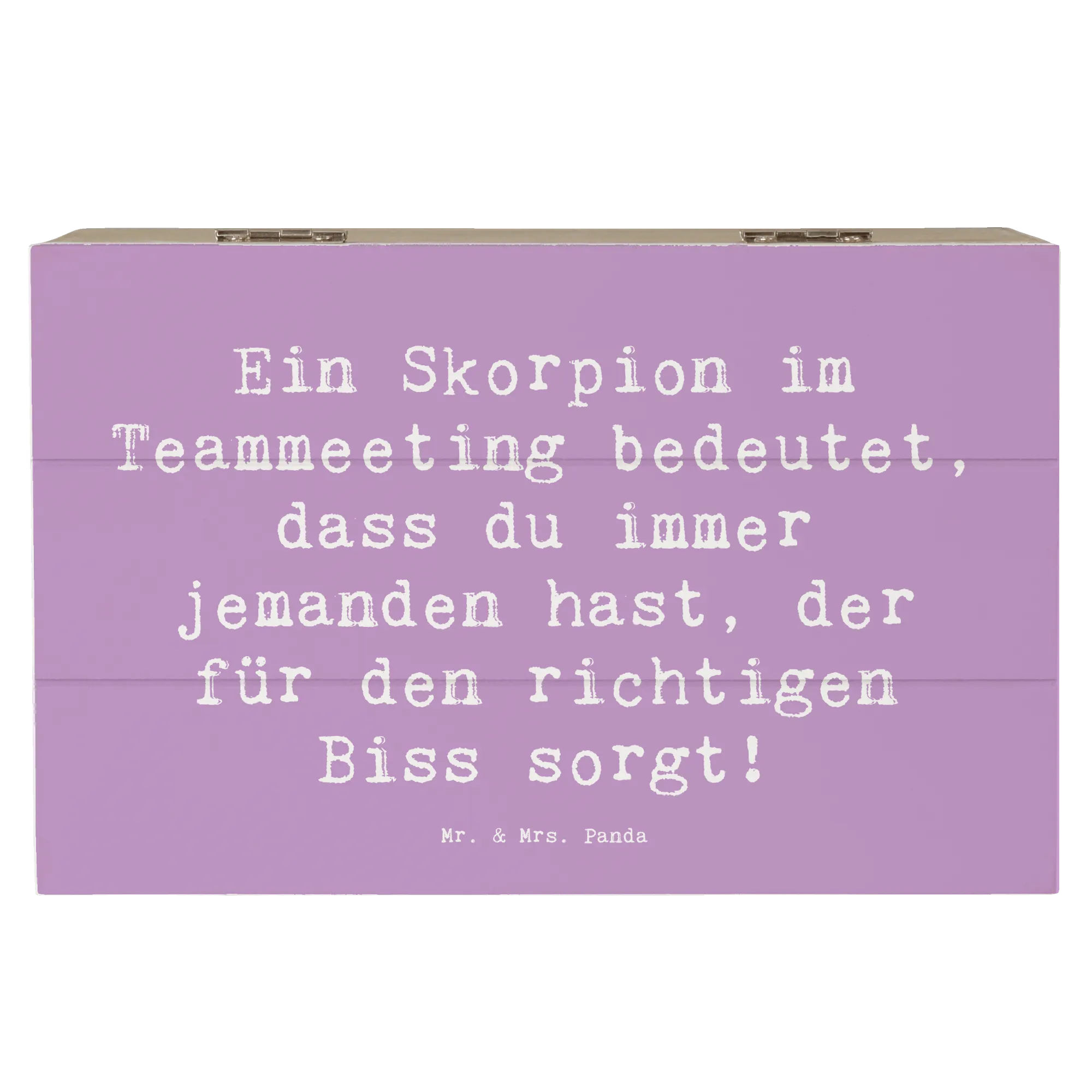 Die Kiste ist nicht nur ein praktischer Aufbewahrungsort, sondern auch ein tolles Dekoelement im Zuhause. Ob für Freunde oder Familie, die Holzkiste mit dem Skorpion-Motiv ist ein persönliches Geschenk für jeden Anlass. Der Spruch "Ein Skorpion im Teammeeting bedeutet, dass du immer jemanden hast, der für den richtigen Biss sorgt!" macht diese Kiste besonders.