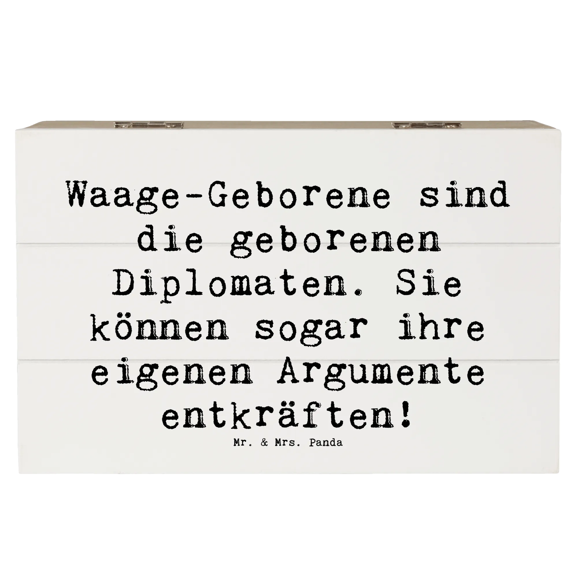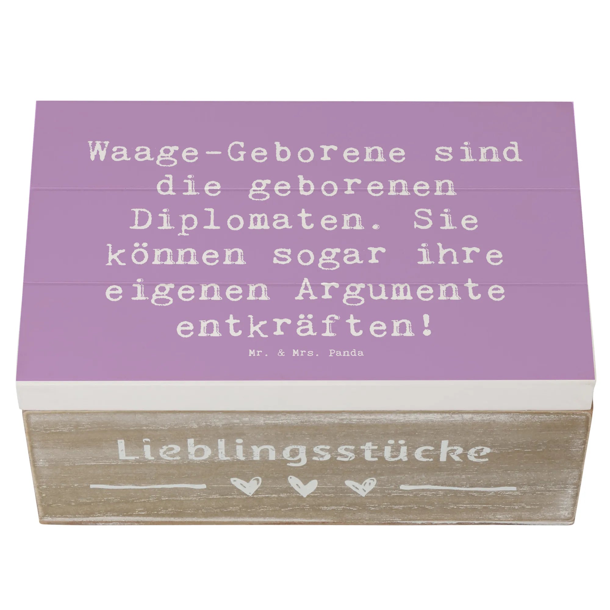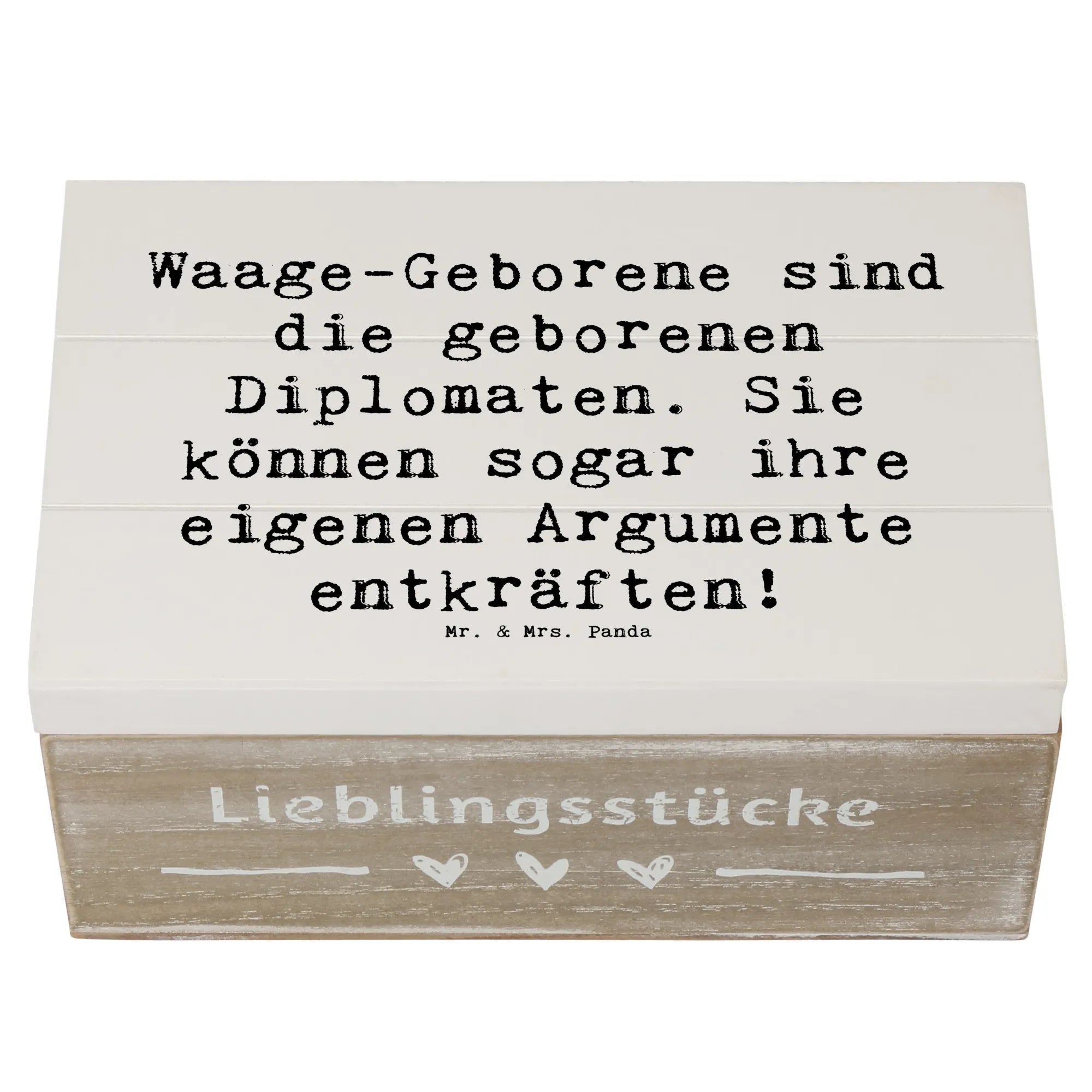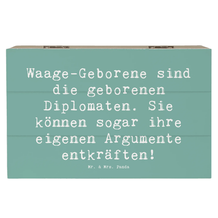 Die wunderschöne Holzkiste von Mr. & Mrs. Panda ist das perfekte Geschenk für alle Waage-Geborenen! Mit einem liebevoll handgezeichneten Motiv und dem Spruch 'Waage-Geborene sind die geborenen Diplomaten. Sie können sogar ihre eigenen Argumente entkräften!' bietet diese Holzkiste einen einzigartigen Charme.