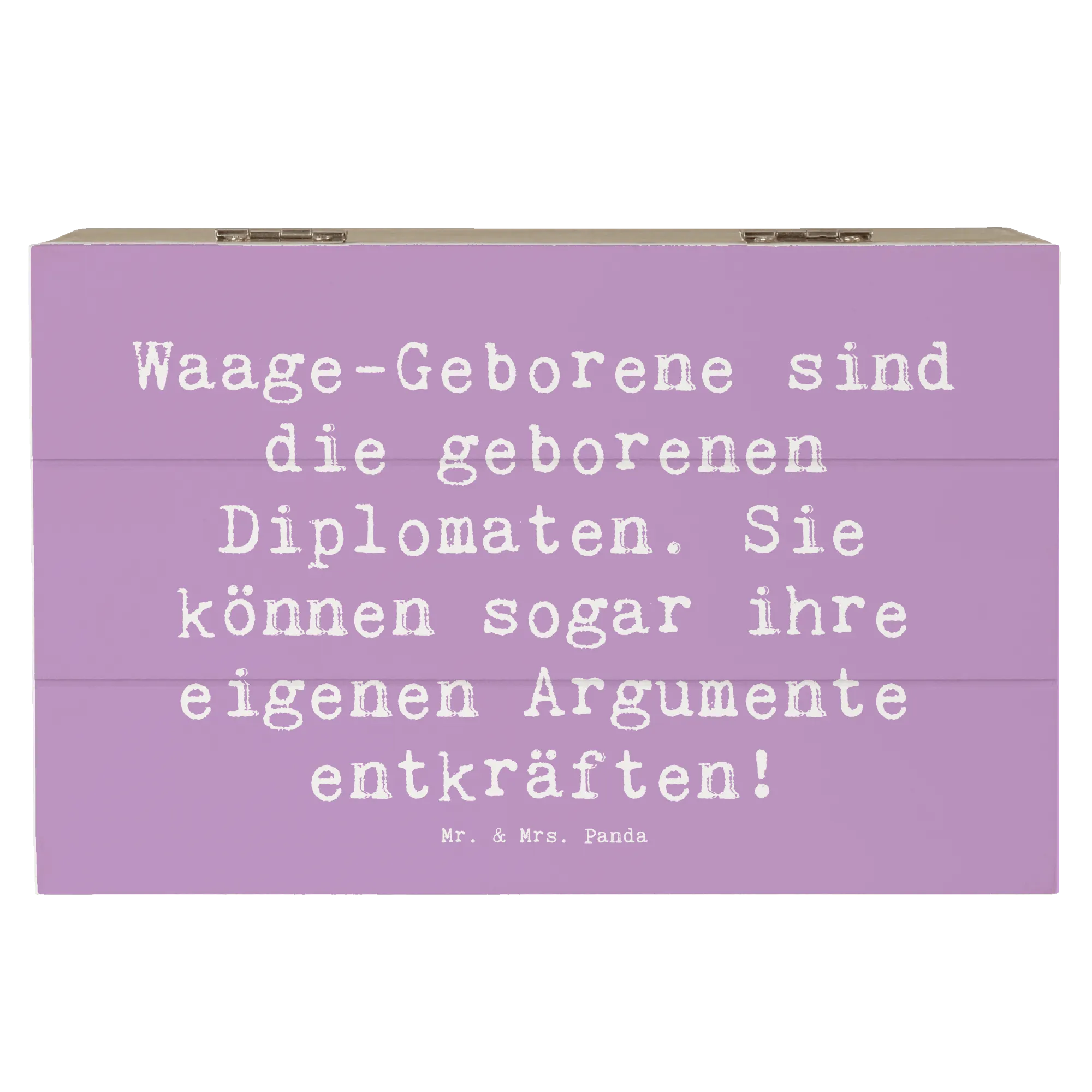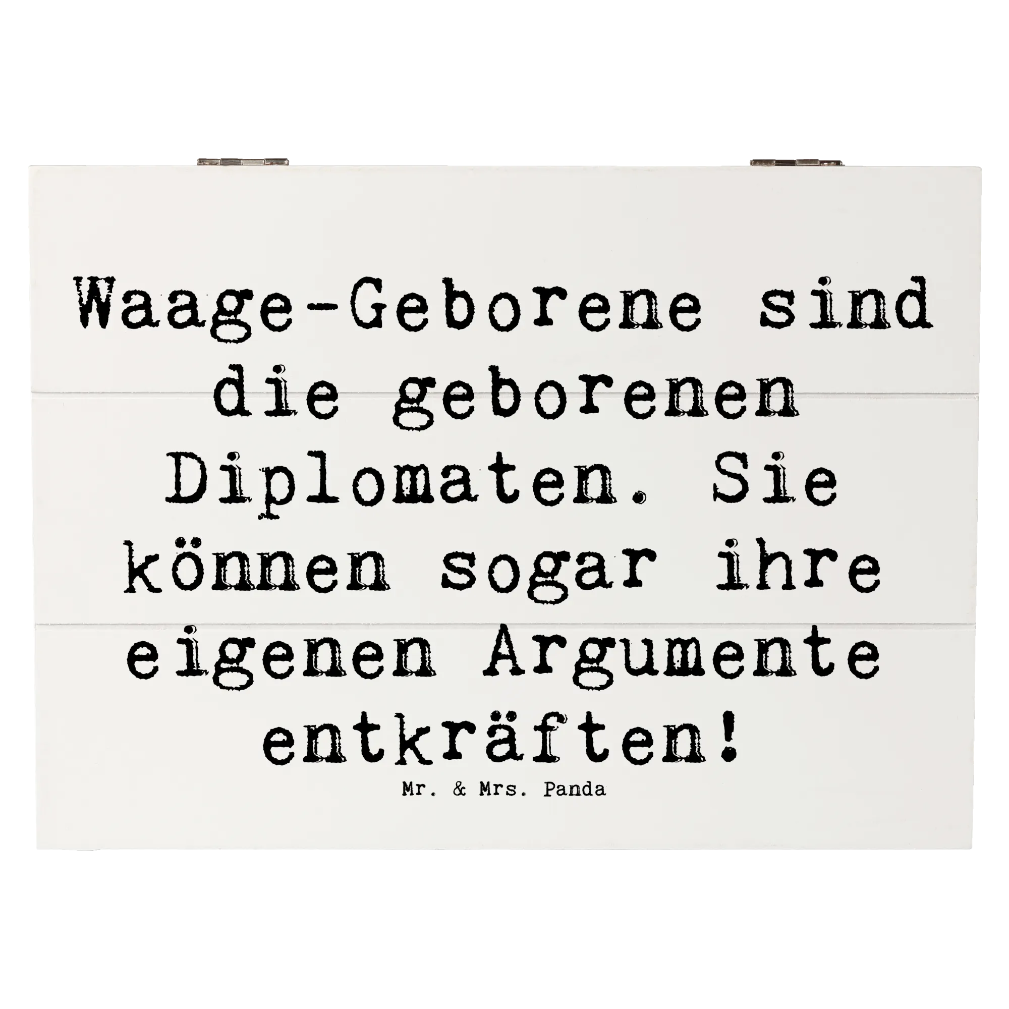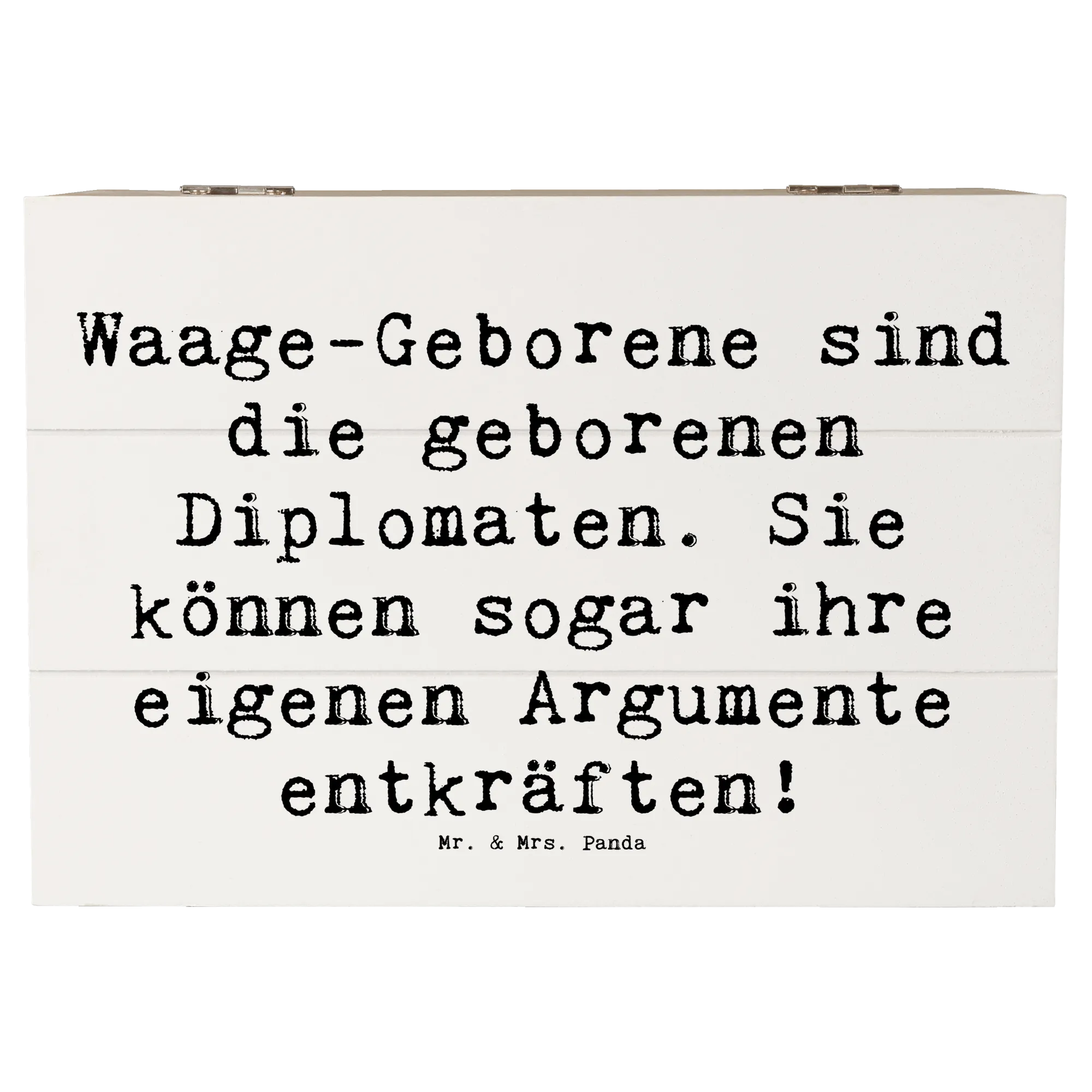 Die wunderschöne Holzkiste von Mr. & Mrs. Panda ist das perfekte Geschenk für alle Waage-Geborenen! Mit einem liebevoll handgezeichneten Motiv und dem Spruch 'Waage-Geborene sind die geborenen Diplomaten. Sie können sogar ihre eigenen Argumente entkräften!' bietet diese Holzkiste einen einzigartigen Charme.