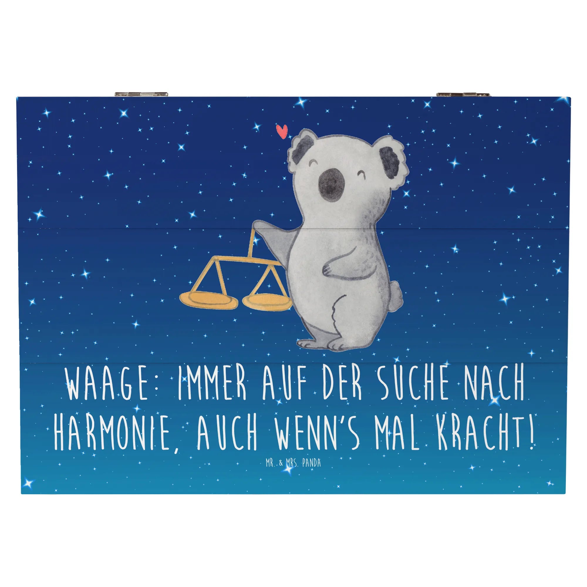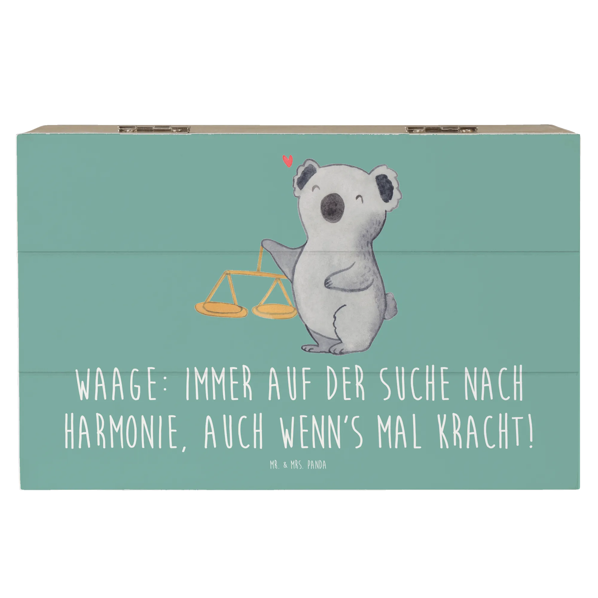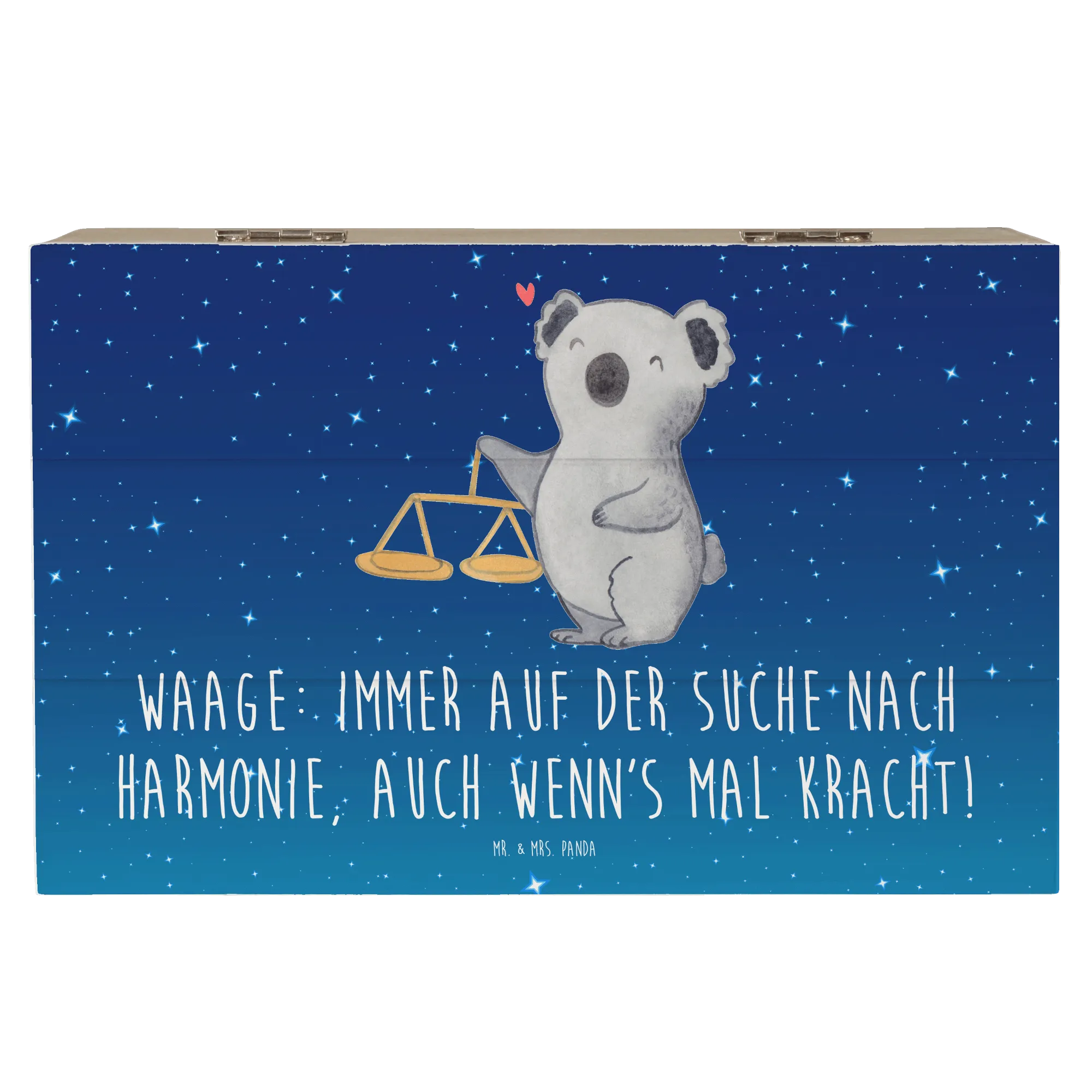 Die schöne Holzkiste Waage von Mr. & Mrs. Panda ist der perfekte Ort, um all deine wertvollen Erinnerungen aufzubewahren! Mit dem liebevollen Motiv der Waage und dem Spruch "Waage: Immer auf der Suche nach Harmonie, auch wenn's mal kracht!" begeistert diese Erinnerungskiste nicht nur Astrologie-Liebhaber, sondern auch jeden, der einen Hauch von Magie in seinem Leben schätzt.