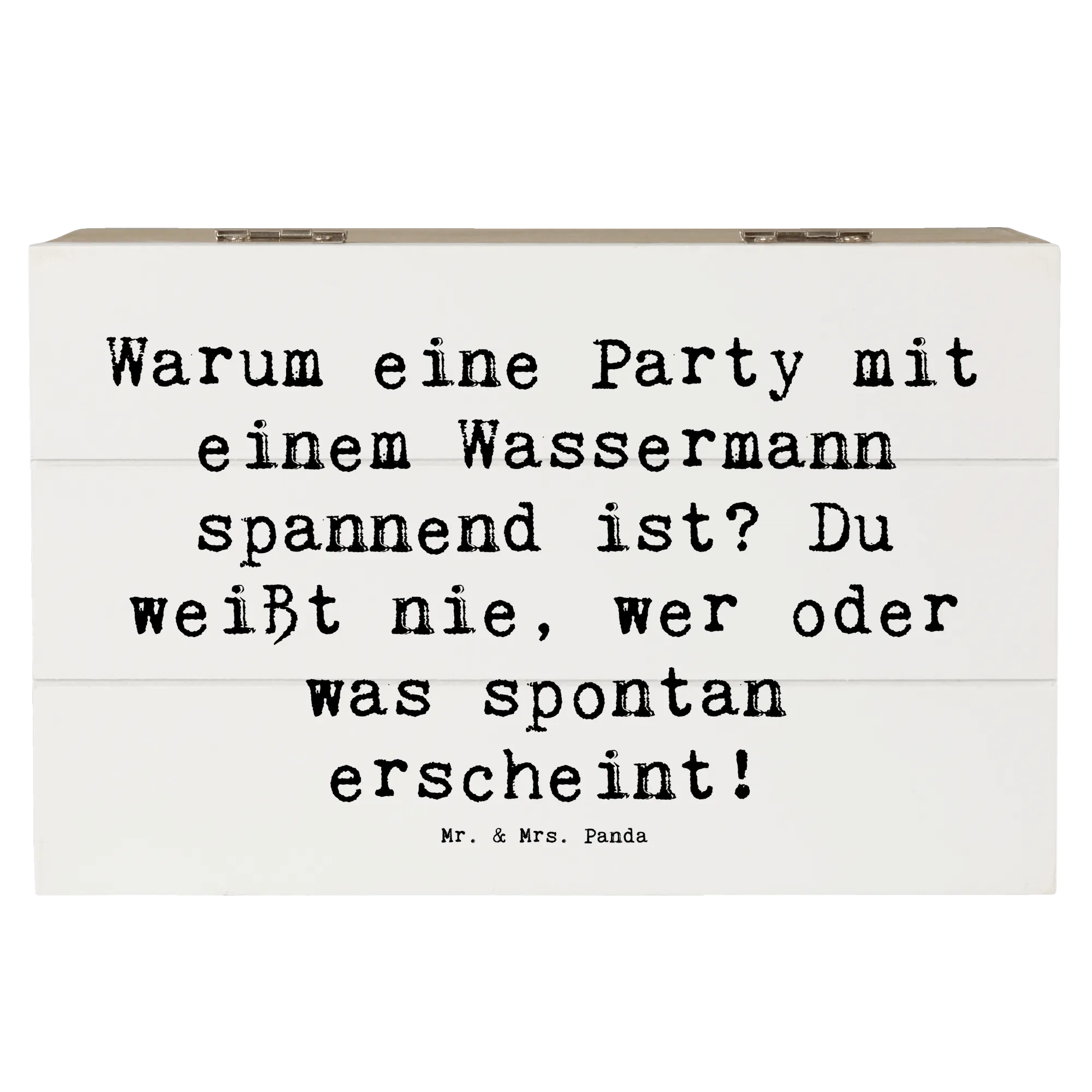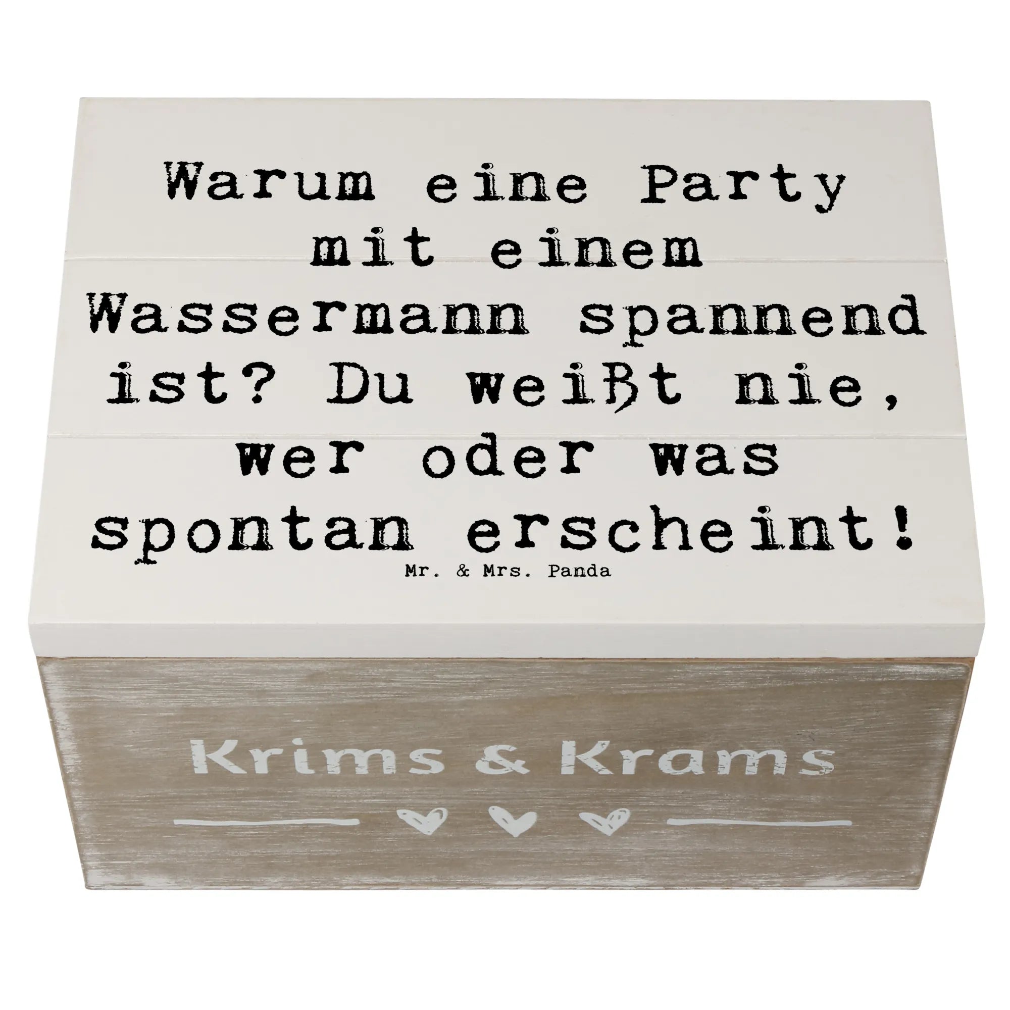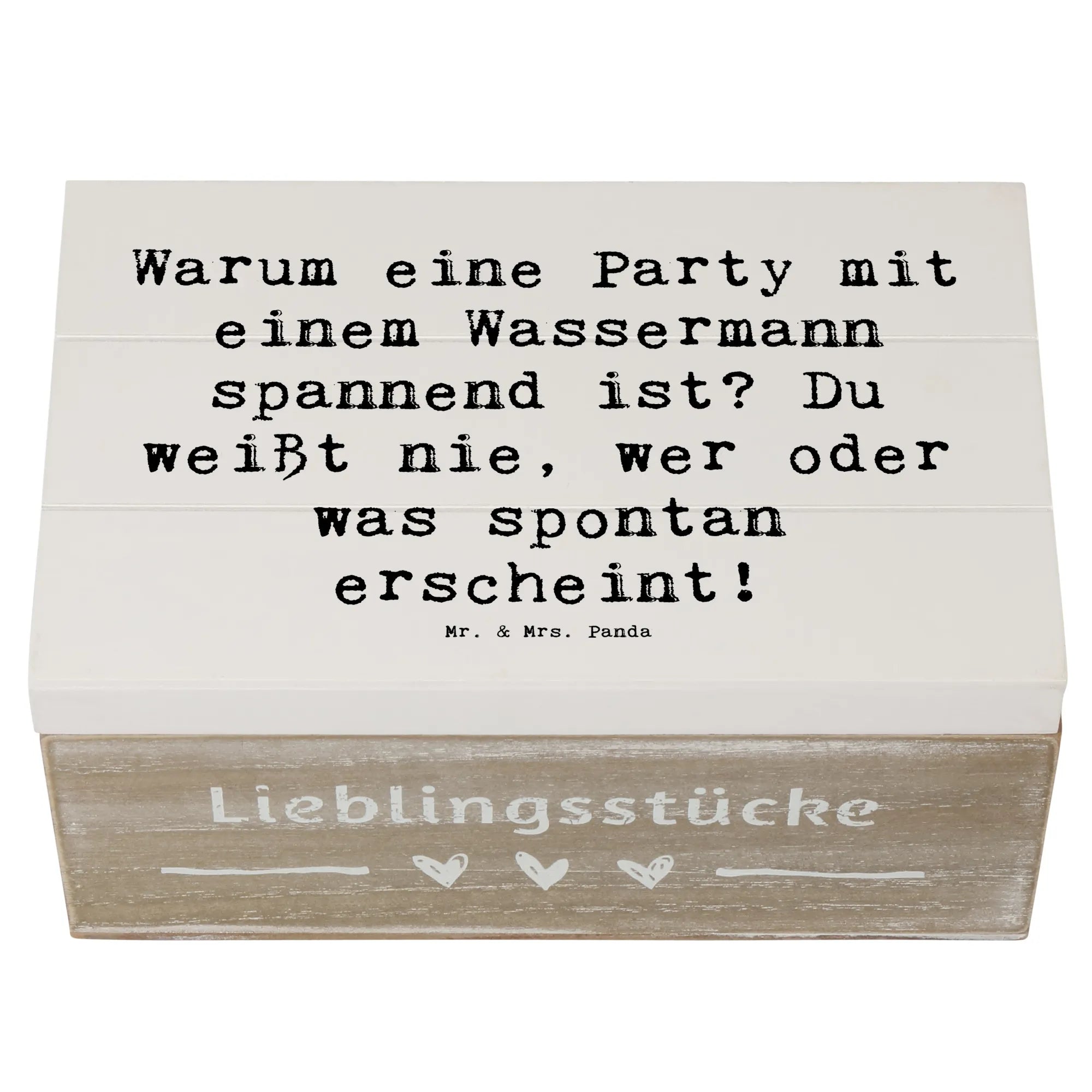 Die wunderschöne Holzkiste von Mr. & Mrs. Panda ist das perfekte Geschenk für alle Wassermann-Geborenen! Mit ihrem charmanten Motiv und dem liebevoll gestalteten Slogan "Warum eine Party mit einem Wassermann spannend ist? Du weißt nie, wer oder was spontan erscheint!" bringt diese Kiste gute Laune und einen Hauch von Magie in jeden Raum.