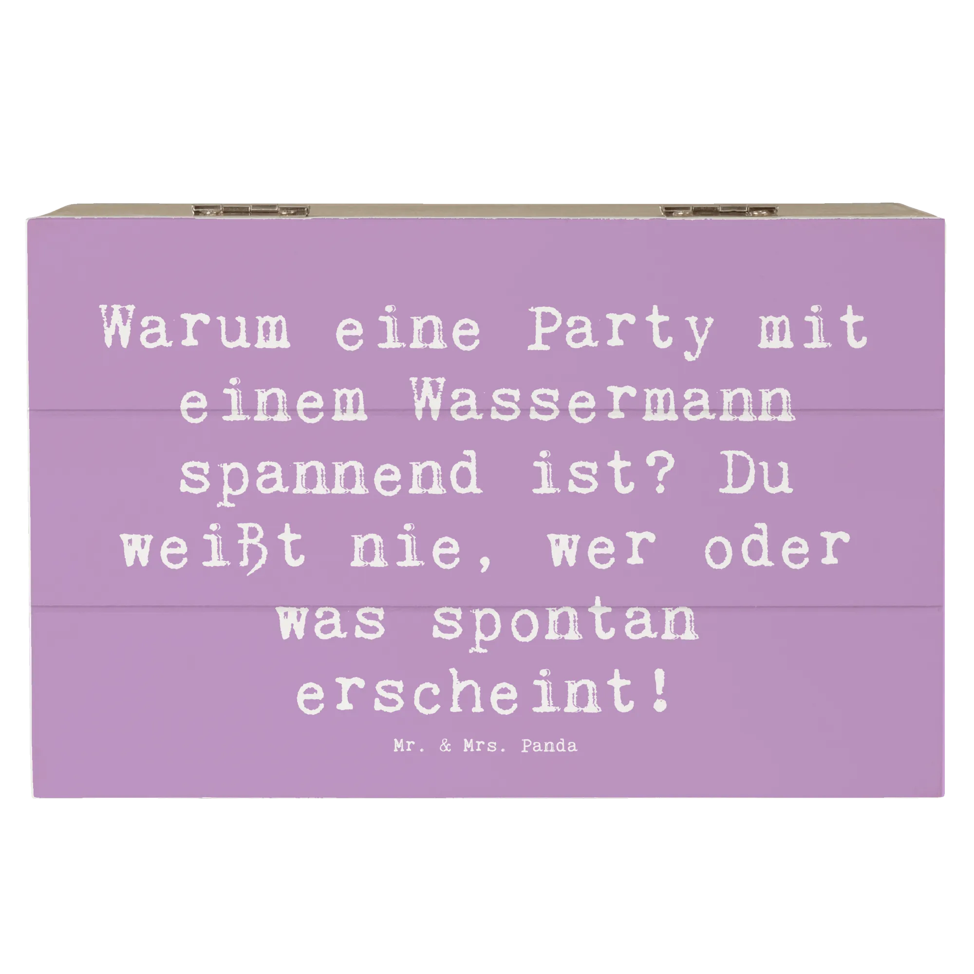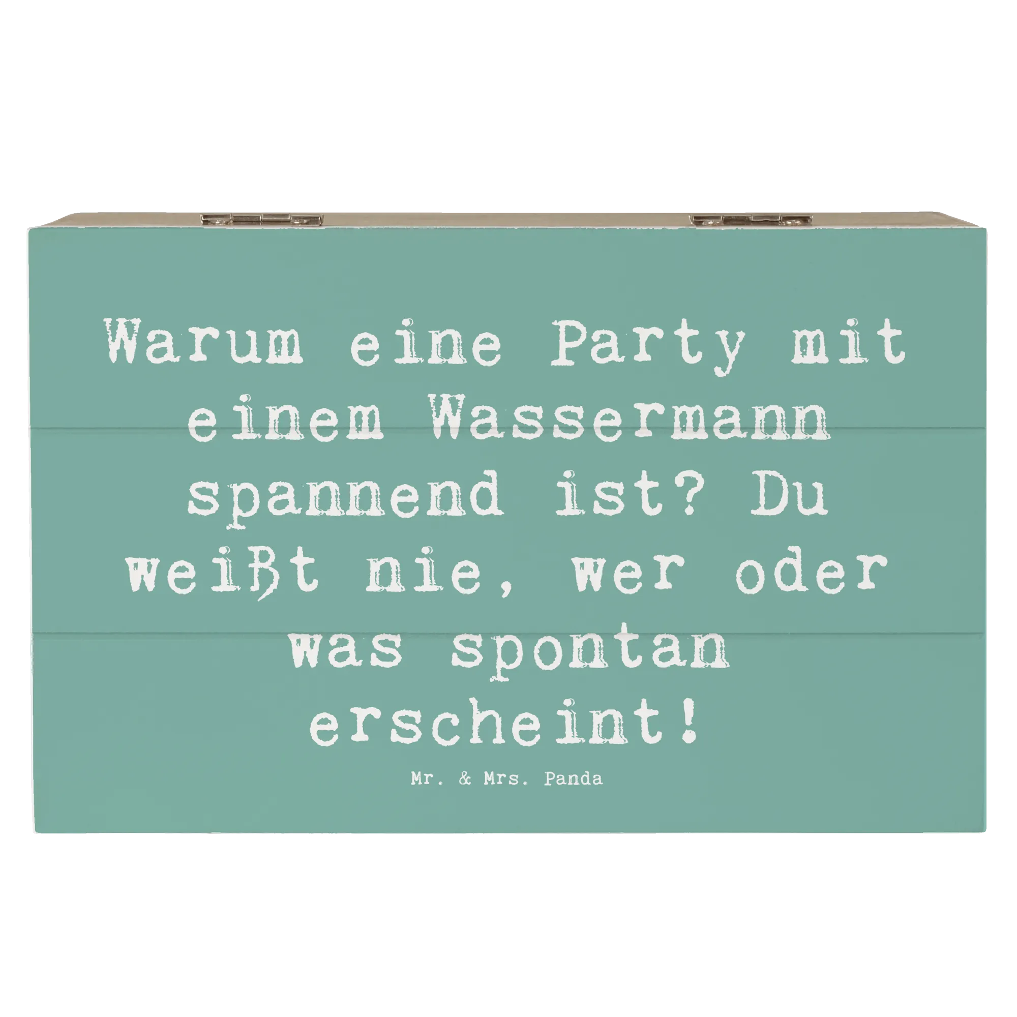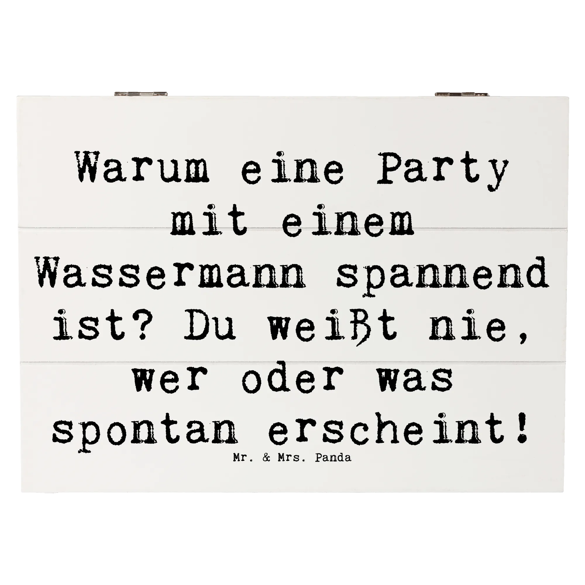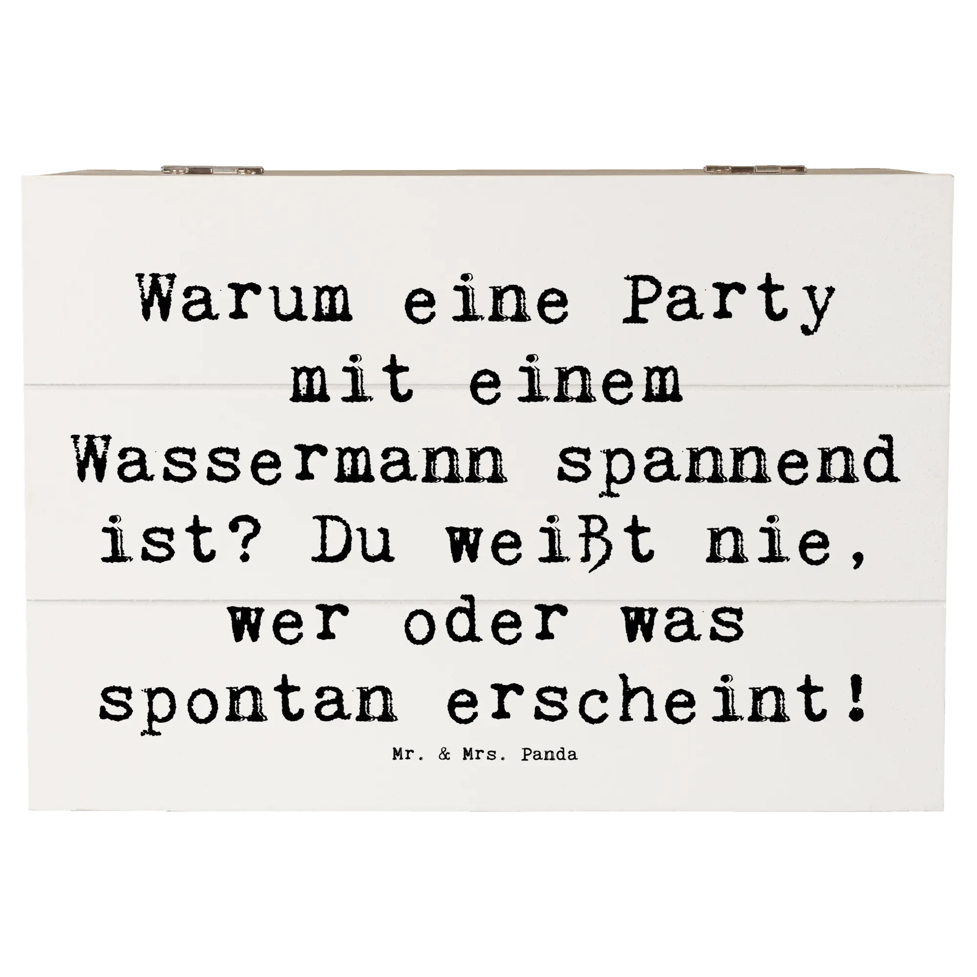 Die wunderschöne Holzkiste von Mr. & Mrs. Panda ist das perfekte Geschenk für alle Wassermann-Geborenen! Mit ihrem charmanten Motiv und dem liebevoll gestalteten Slogan "Warum eine Party mit einem Wassermann spannend ist? Du weißt nie, wer oder was spontan erscheint!" bringt diese Kiste gute Laune und einen Hauch von Magie in jeden Raum.
