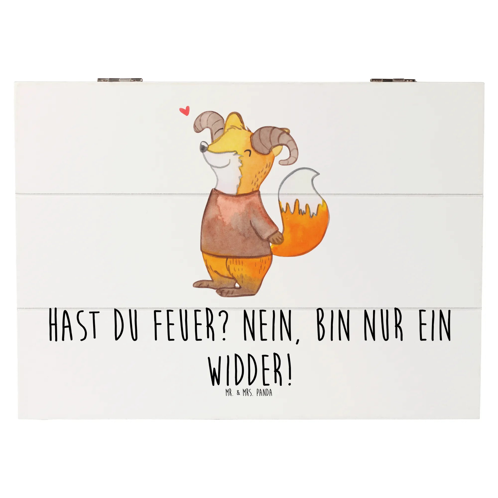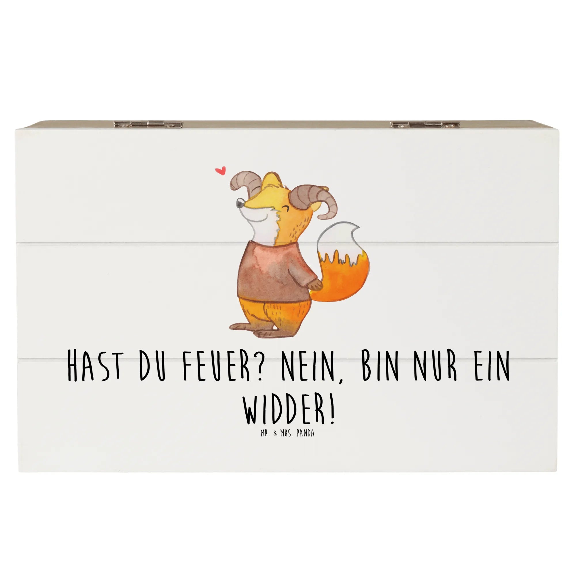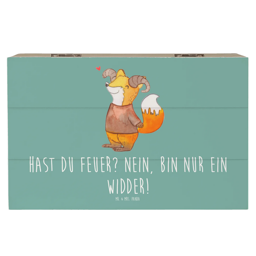 Gefertigt aus robuster Holzfaser, bietet die Kiste ausreichend Platz für all die kleinen Schätze des Lebens. Ob Fotos, Briefchen oder besondere Andenken - die Kiste verwahrt sie sicher und stilvoll auf und sorgt dafür, dass die Erinnerungen immer griffbereit sind. Das Highlight dieser Kiste ist der süße Spruch "Hast du Feuer? Nein, bin nur ein Widder!" – ein echter Hingucker und ein tolles Gesprächsstück.