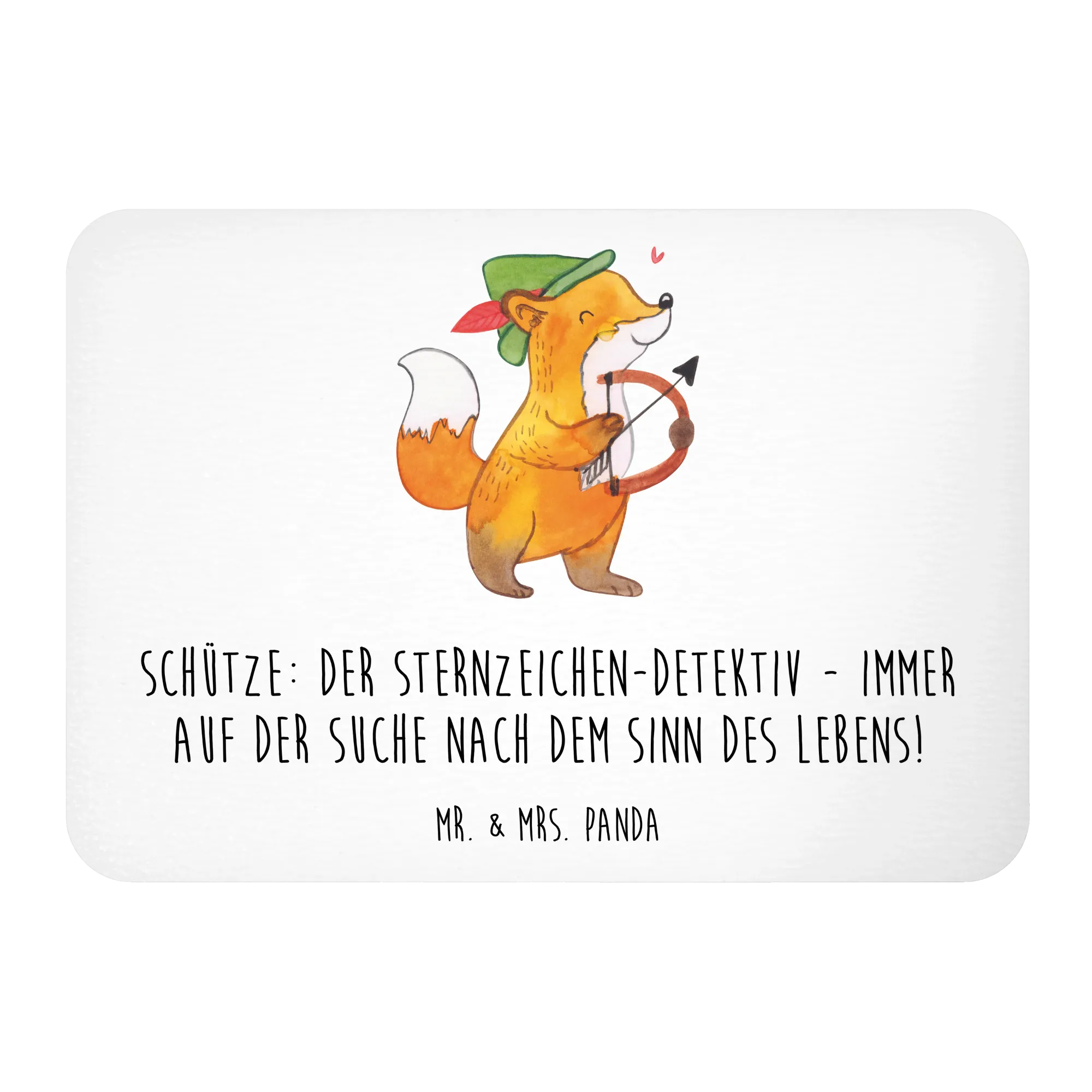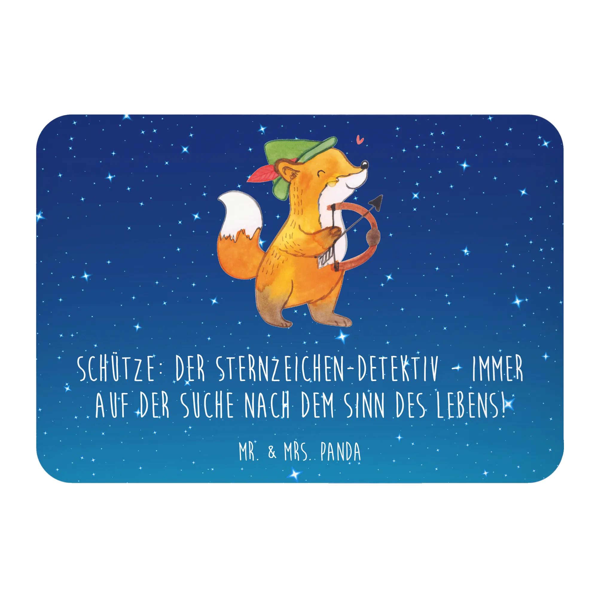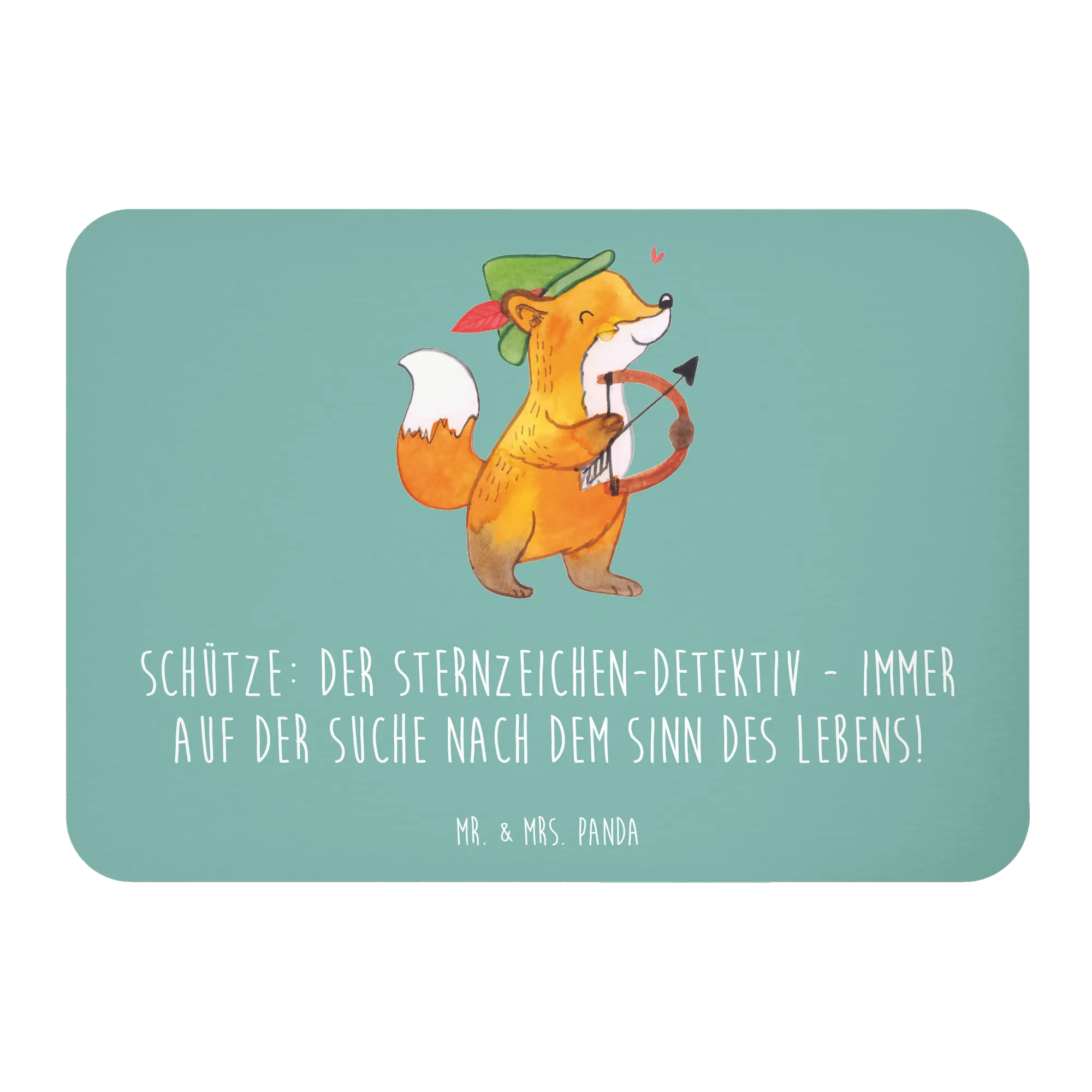 Der Kühlschrankmagnet "Schütze: Der Sternzeichen-Detektiv - immer auf der Suche nach dem Sinn des Lebens!" aus der besonderen Kollektion von Mr. & Mrs. Panda ist das perfekte Geschenk für all jene, die an Astrologie und den Geheimnissen der Sternzeichen interessiert sind.