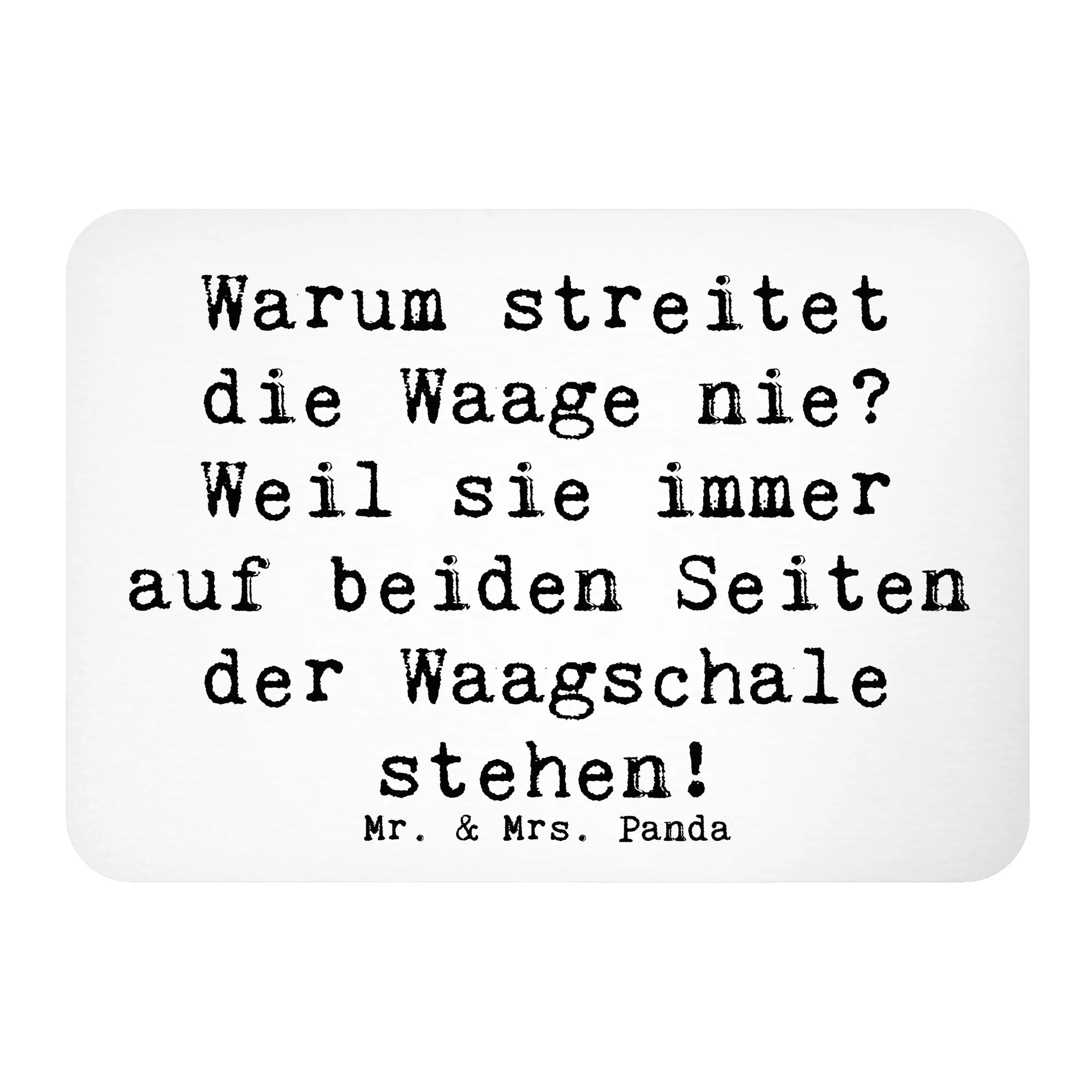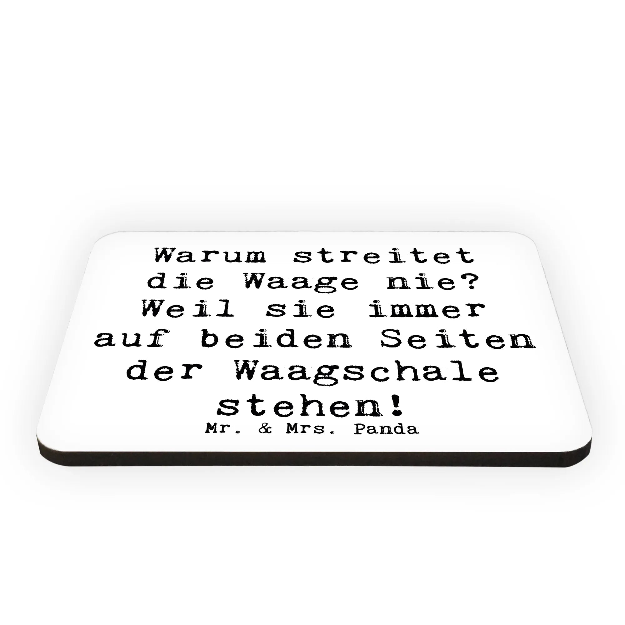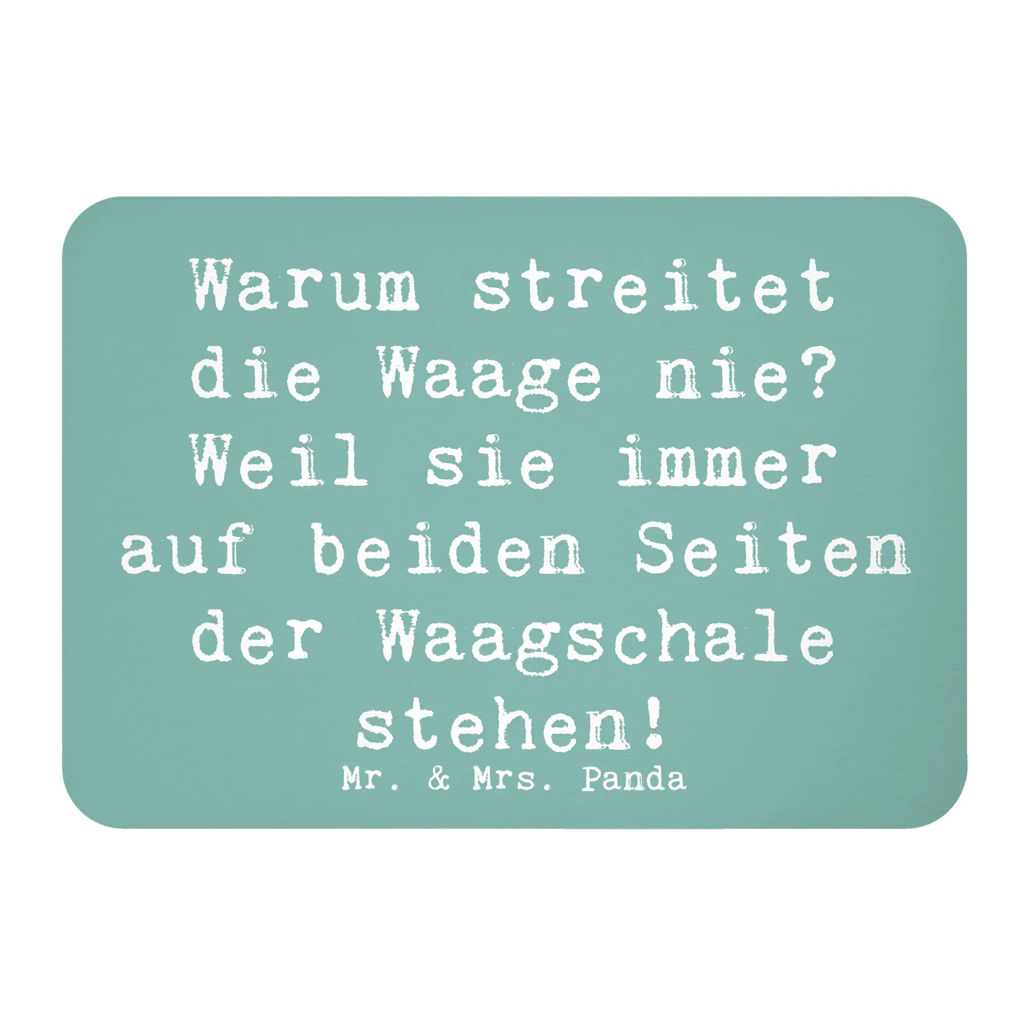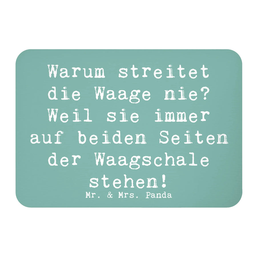 Mit der liebevoll handgezeichneten Illustration einer Waage, die mit dem Spruch "Warum streitet die Waage nie? Weil sie immer auf beiden Seiten der Waagschale stehen!" verziert ist, bringt er ein Lächeln auf jede Küchentür oder Pinnwand.