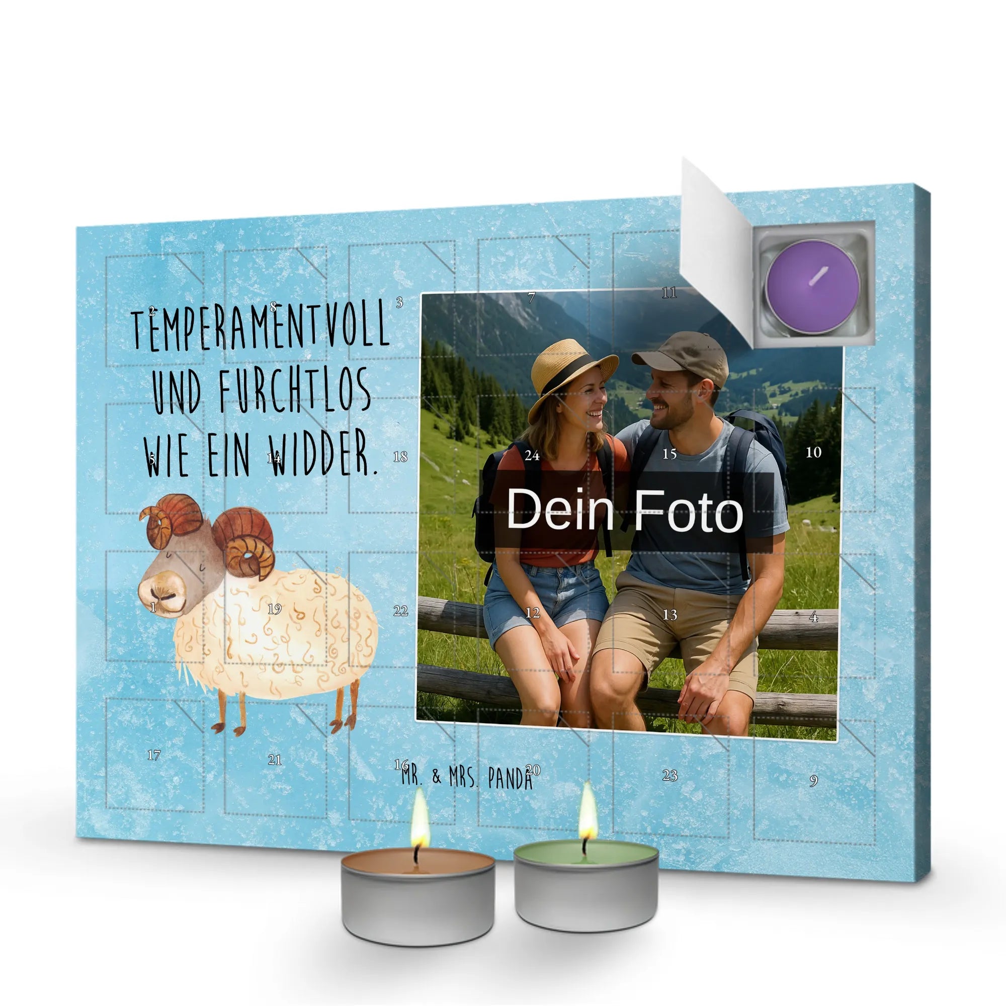 Personalisierter Duftkerzen Foto Adventskalender Sternzeichen Widder - Eisblau