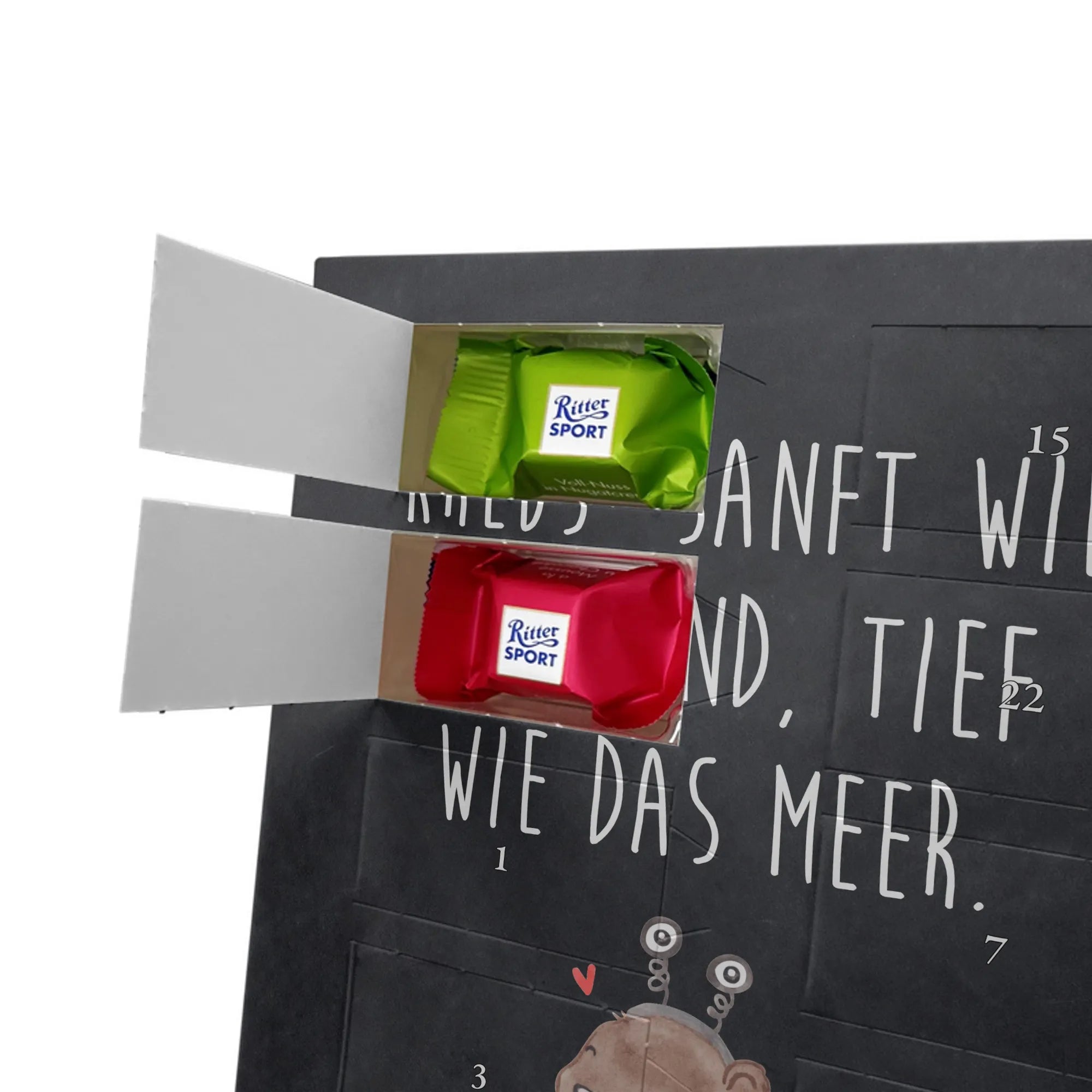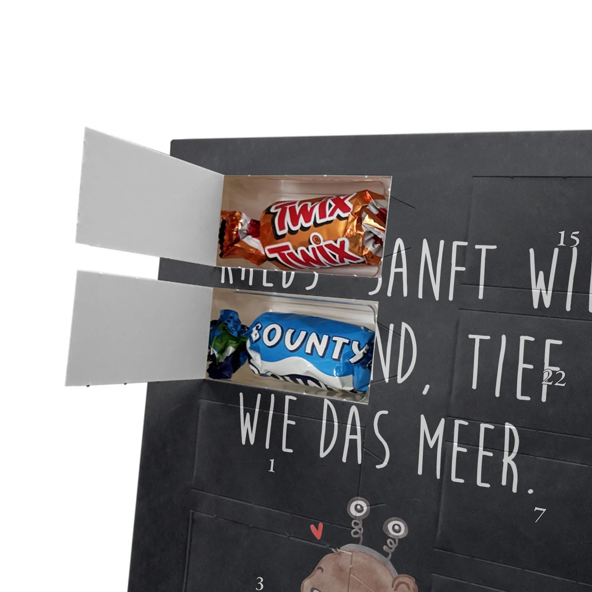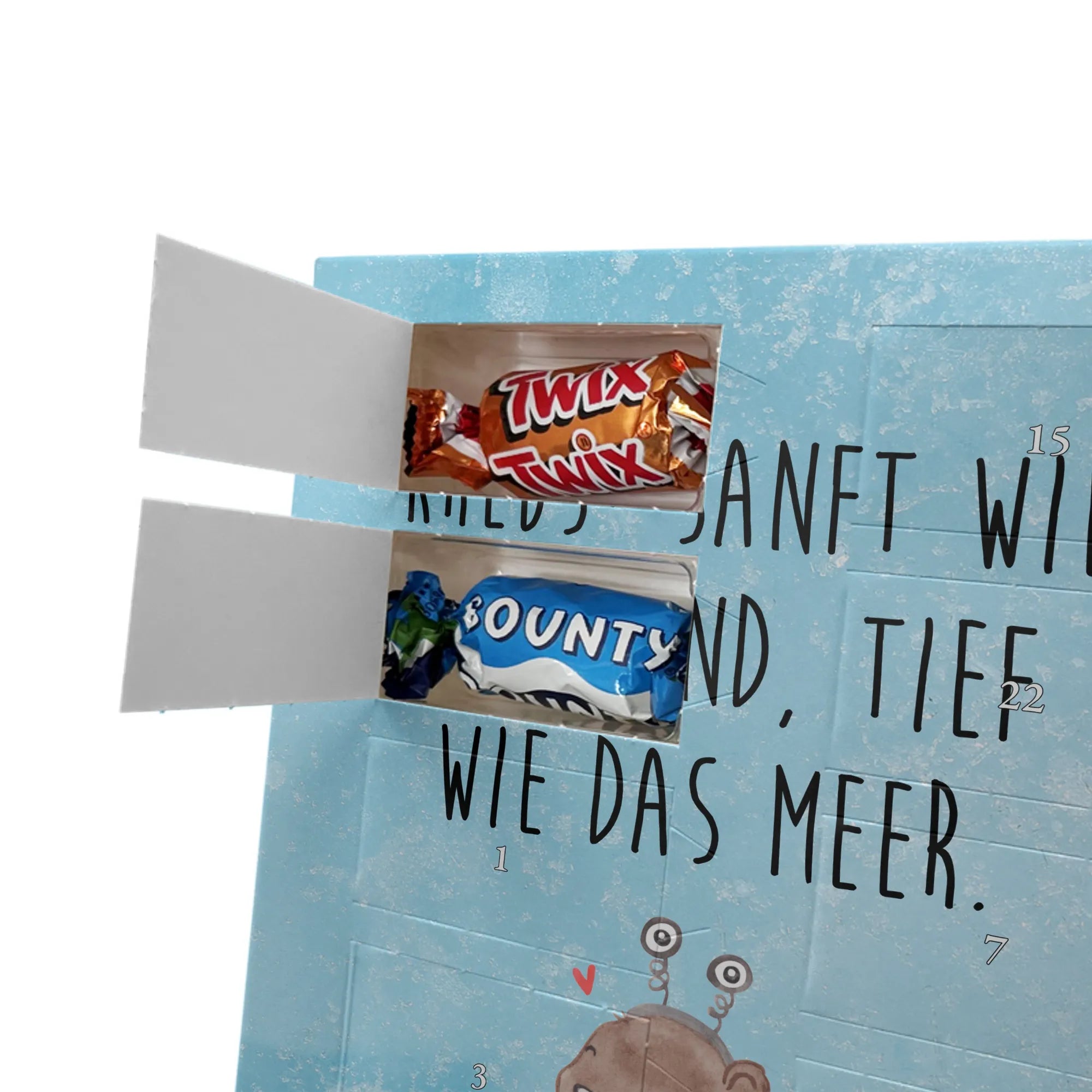 Personalisierter Schoko-Adventskalender mit Foto – das kleine Weihnachtswunder von Mr. & Mrs. Panda! Verschenke jeden Tag Vorfreude: Der Kalender ist liebevoll gestaltet mit unseren herzlichen Illustrationen und Sprüchen, während dein Foto die persönliche Mitte bildet. Bitte lade ein hochauflösendes Foto hoch und prüfe den Bildausschnitt, damit nichts Wichtiges verloren geht. Nutze nur Bilder, für die du die Rechte hast. Die hochwertige, seidenmatte Veredelung und die bedruckten Seitenflächen garantieren ein edles Erscheinungsbild. Maße: 355 mm x 245 mm x 11 mm; lässt sich sowohl aufhängen als auch aufstellen. Achtung: Fotos werden nicht nachbearbeitet oder zugeschnitten; personalisierte Artikel sind vom Rückgaberecht ausgeschlossen. Gefüllt mit 24 einzeln verpackten Schokoladentäfelchen aus den vier Geschmacksrichtungen Vollmilch, Nougat, Zartbitter und Haselnuss – von Sarotti® und Confiserie Heidel®. Insgesamt enthält der Kalender 107 g Markenschokolade. Ein persönliches Geschenk mit süßem Inhalt, ideal für Partner, Familie und Freunde, verpackt mit der typischen Mr. & Mrs. Panda Liebe zum Detail.