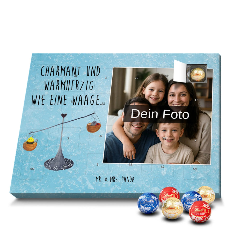 Personalisierter Schoko Foto Adventskalender Sternzeichen Waage - Lindt LINDOR - Eisblau
