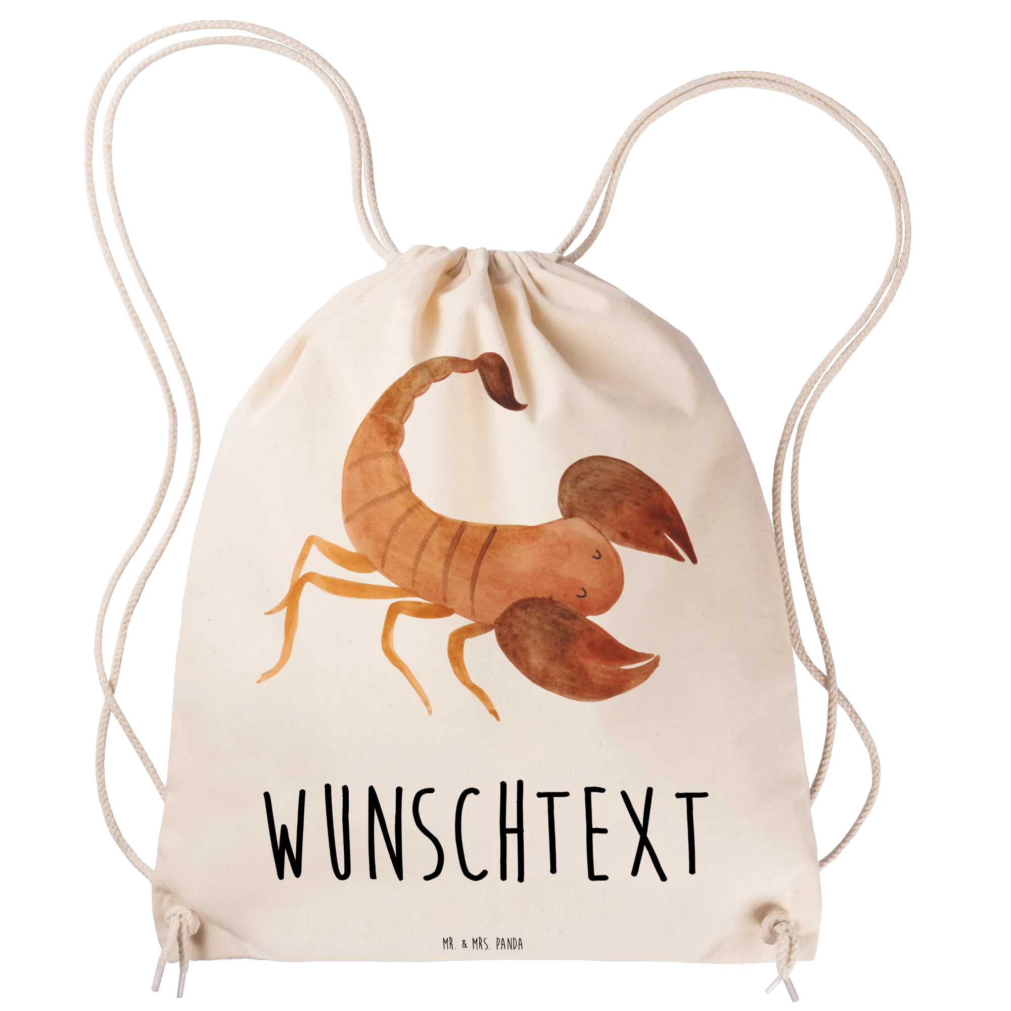 Personalisierter Sportbeutel „Skorpion“ – aus der liebevollen Sternzeichen-Kollektion von Mr. & Mrs. Panda. Unser niedlicher Skorpion mit dem Spruch „Willensstark und leidenschaftlich wie ein Skorpion“ macht diesen Gymsack zu einem ganz besonderen Begleiter. Ob als Festival Beutel, Gymbag oder Turnbeutel für Schule und Sport: mit deinem Wunschtext wird er zum individuellen Unikat.