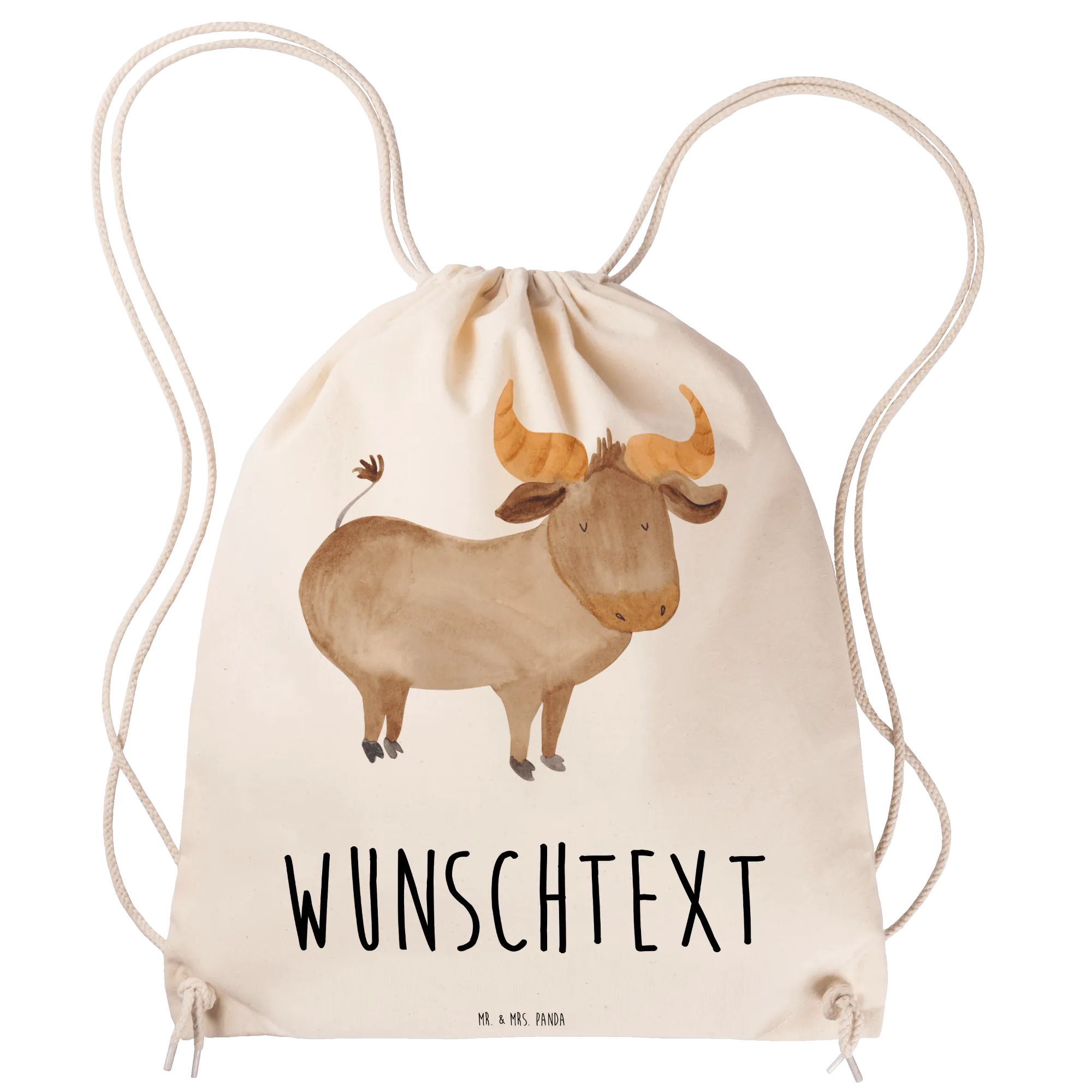Entdecke den personalisierten Sportbeutel mit dem zauberhaften Motiv des Sternzeichens Stier! Dieser einzigartige Sportbeutel von Mr. & Mrs. Panda ist der perfekte Begleiter für alle, die Leidenschaft und Stärke in ihrem Leben schätzen. Egal ob beim Sport, im Alltag oder auf Festivals – mit diesem hochwertigen, aus 100% weicher Baumwolle gefertigten Beutel liegst du immer richtig. Du kannst ihn mit deinem Wunschnamen oder Wunschtext personalisieren.