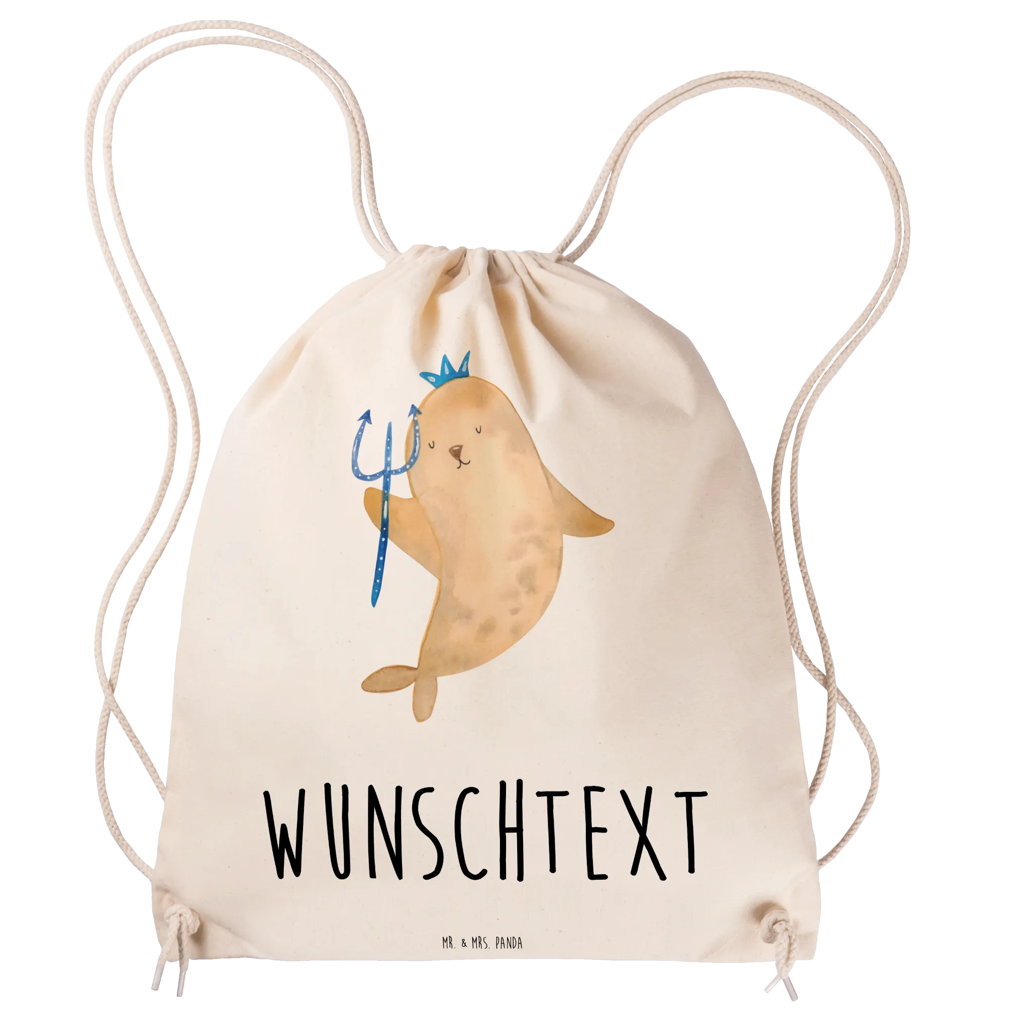 Darüber hinaus ist unser Sportbeutel nicht nur für Erwachsene ein tolles Accessoire, sondern auch ein wunderbares Geschenk für Kinder. Die kindgerechte Gestaltung und die Möglichkeit zur Personalisierung machen ihn zu einem perfekten Geburtstags- oder Weihnachtsgeschenk für kleine Wassermann-Fans. Der Wassermann, illustriert als eine Robbe mit Krone und Zepter, bringt zusätzlichen Charme und sorgt für leuchtende Augen bei jedem Beschenkten.