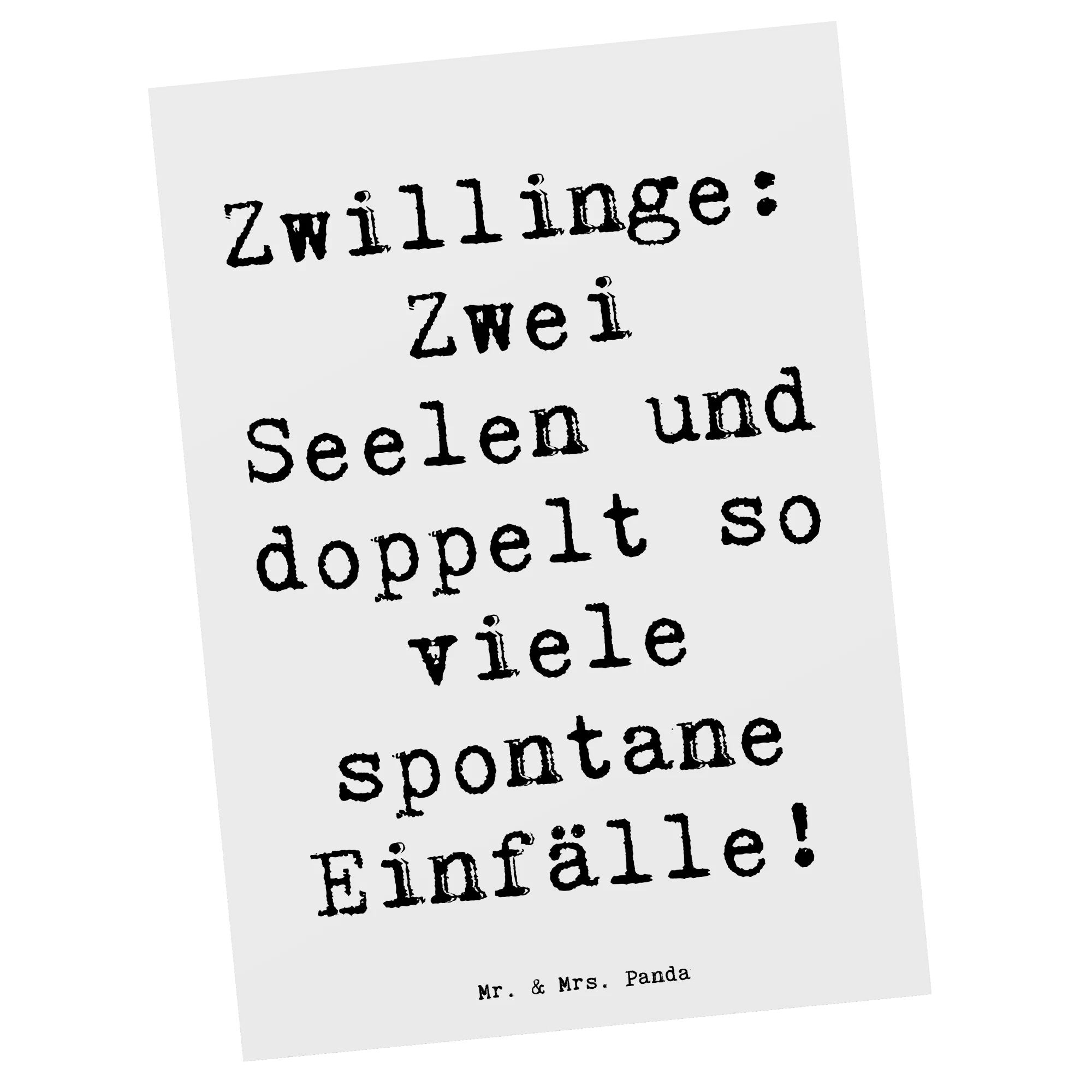 Entdecke die zauberhafte Welt der Sternzeichen mit unserer einzigartigen Postkarte "Zwillinge" von Mr. & Mrs. Panda! Diese liebevoll gestaltete Grußkarte ist ideal für all jene, die die vielseitigen und kreativen Eigenschaften des Sternzeichens Zwillinge zu schätzen wissen. Egal, ob Du einen Geburtstag, eine Hochzeit oder einfach nur so eine nette Überraschung vorbereiten möchtest – diese Karte ist das perfekte Geschenk für die besonderen Menschen in Deinem Leben.