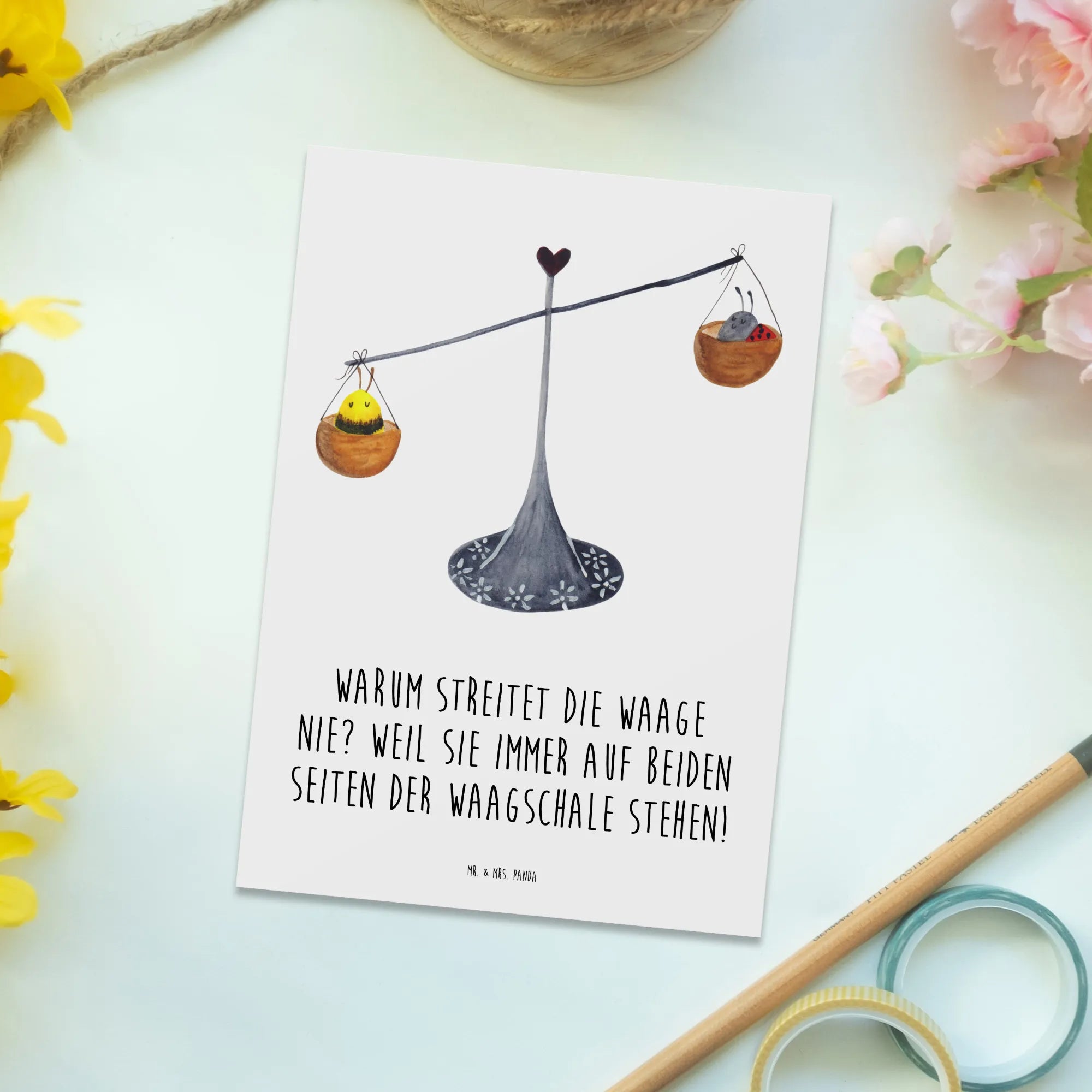 Schneke Freude, überrasche sie mit einem Schmunzler und bleibe in Gedanken – mit der Waage-Postkarte von Mr. & Mrs. Panda, die in keinem Briefkasten fehlen sollte!