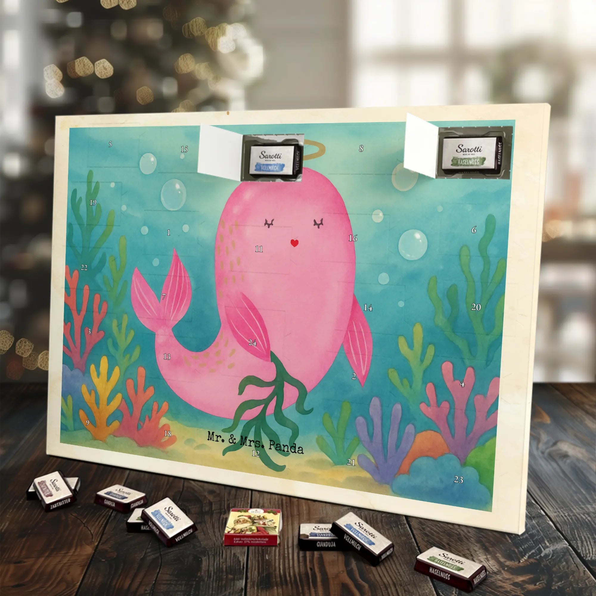 Wunderschöner Schoko Adventskalender von Mr. & Mrs. Panda – perfekt für alle, die die Vorweihnachtszeit mit süßen Momenten feiern möchten. Unser Adventskalender ist liebevoll bedruckt mit zauberhaften Motiven und freundlichen Sprüchen von Mr. & Mrs. Panda. Die brillante Druckqualität und die seidenmatte Oberflächenveredelung lassen die Farben sanft und edel wirken, während die bedruckten Seitenflächen den besonderen Look abrunden. Der Kalender ist nicht personalisierbar, dafür aber vielseitig: Du kannst ihn aufstellen oder ganz einfach an der Wand aufhängen. Gefüllt ist der Kalender mit hochwertiger Markenschokolade: 24 einzeln verpackte Schokoladentäfelchen in vier leckeren Geschmacksrichtungen von Sarotti® und Confiserie Heidel® – Vollmilch, Nougat, Zartbitter und Haselnuss. Insgesamt enthält der Kalender 107 g Markenschokolade von Sarotti® und Confiserie Heidel®. Die kompakte Bauweise macht ihn zum dekorativen Hingucker auf dem Sideboard, auf dem Esstisch oder als besonderes Geschenk für Freundinnen, Familie und liebe Menschen. Maße: 355 mm x 245 mm x 11 mm. Mit diesem Schoko Adventskalender schenkst du kleine Freuden und zauberhafte Vorfreude auf die schönsten Tage des Jahres – ganz im gemütlichen Stil von Mr. & Mrs. Panda.