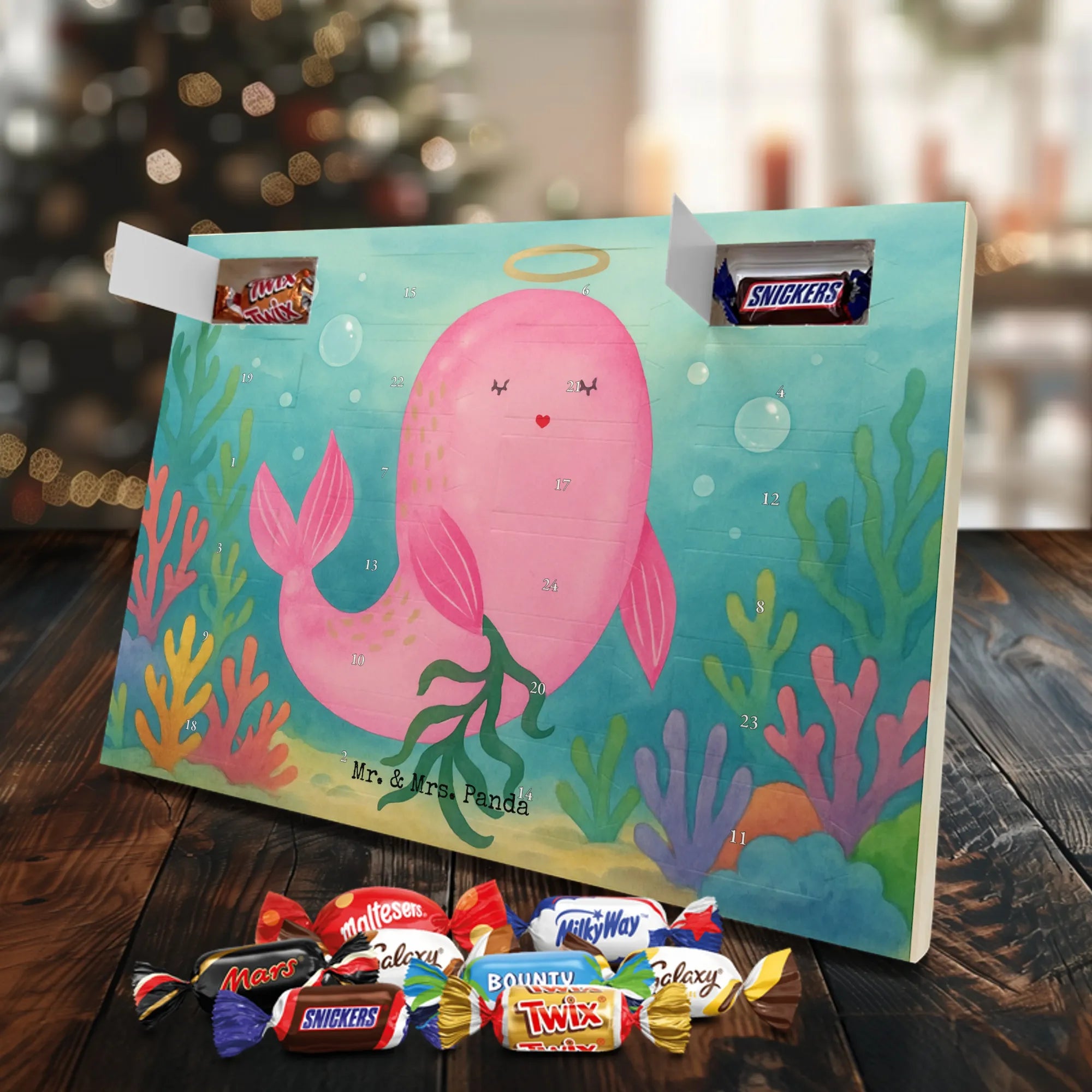 Unser liebevoller Schokoladen Adventskalender von Mr. & Mrs. Panda ist die perfekte Überraschung für gemütliche Adventstage. Mit verspielten Illustrationen und herzlichen Sprüchen bedruckt, verbreitet er Wärme und gute Laune. Die hochwertige Druckqualität und die seidenmatte Oberflächenveredelung geben dem Kalender einen edlen Look, während die bedruckten Seitenflächen das Design komplettieren. Hinweis: Der Kalender ist nicht personalisierbar. Hinter den 24 Türchen verbergen sich feine Celebrations-Füllungen in acht köstlichen Sorten: Maltesers, Mars, Snickers, Twix, Milky Way, Bounty, Galaxy und Galaxy Caramel — insgesamt 24 hochwertige Überraschungen. Praktisch: Du kannst den Kalender entweder aufstellen oder an die Wand hängen. Maße: 325 mm x 225 mm x 27 mm. Ideal als Geschenk für Freundinnen, Familie oder als kleine Aufmerksamkeit für dich selbst, um jeden Tag im Dezember mit einem Lächeln zu beginnen.