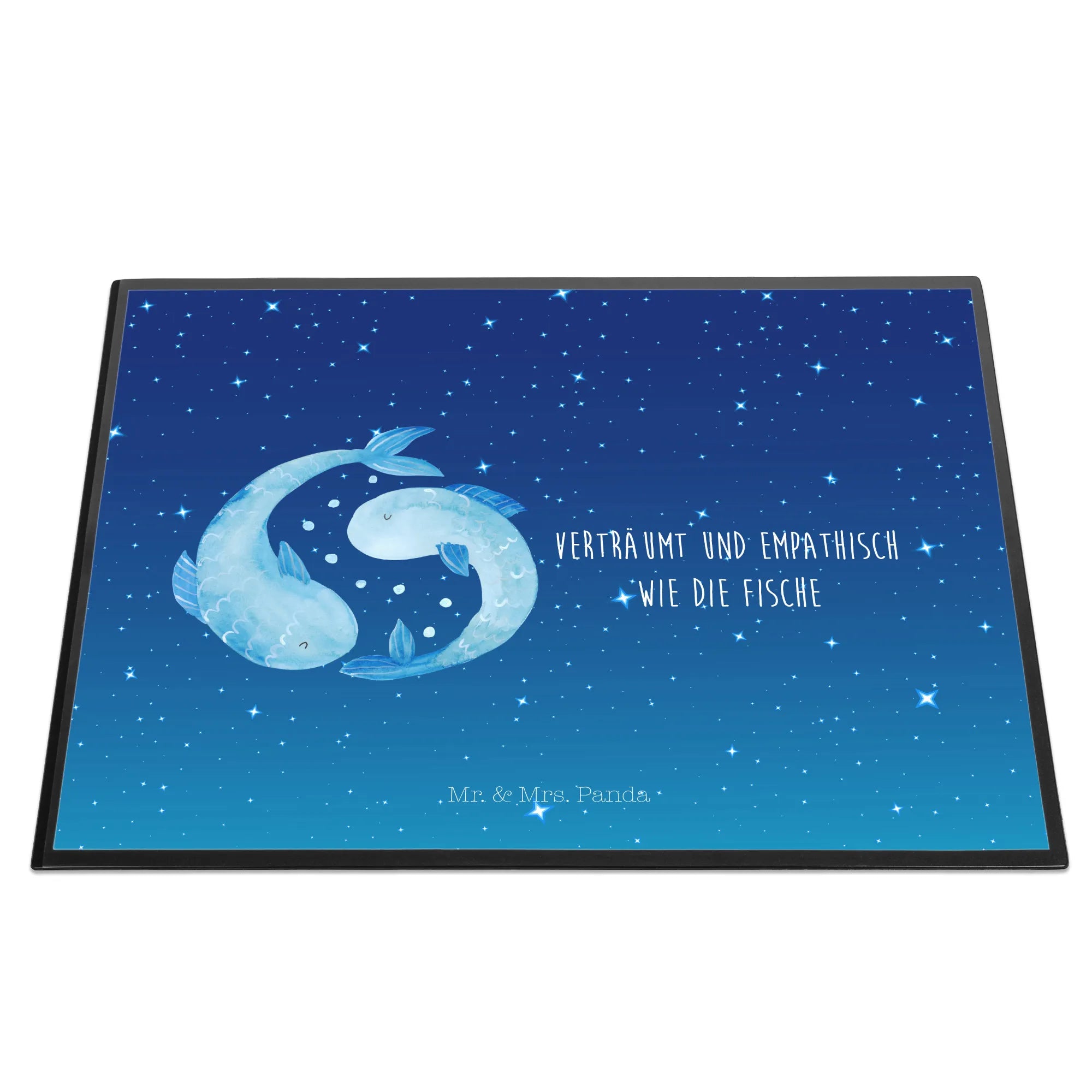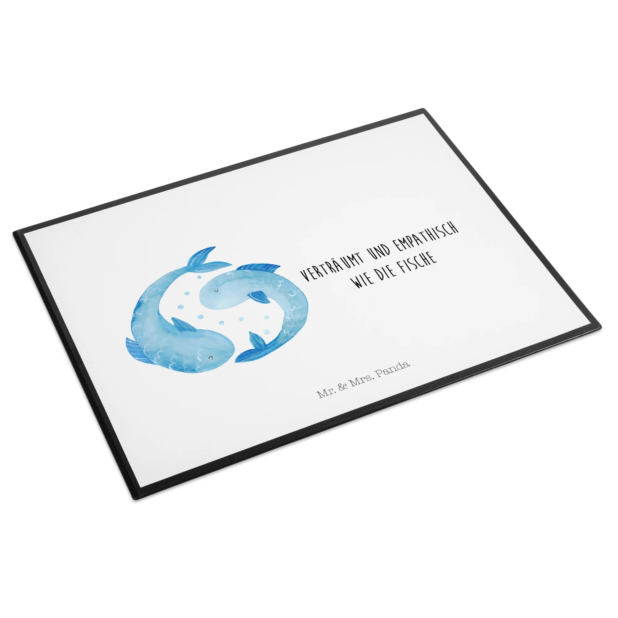 Die Schreibtischunterlage Sternzeichen Fische von Mr. & Mrs. Panda ist das perfekte Geschenk für alle, die im Februar oder März geboren sind und ihre kreative Seite am Arbeitsplatz oder zu Hause ausleben möchten. Diese wunderschöne Schreibtischauflage kombiniert nicht nur Funktionalität, sondern auch Stil und eine Prise Magie der Astrologie. Mit einem liebevoll von Hand gezeichneten Motiv von zwei Fischen, die harmonisch im Kreis schwimmen, verkörpert dieses Design die verträumte und empathische Natur des Sternzeichens Fische.