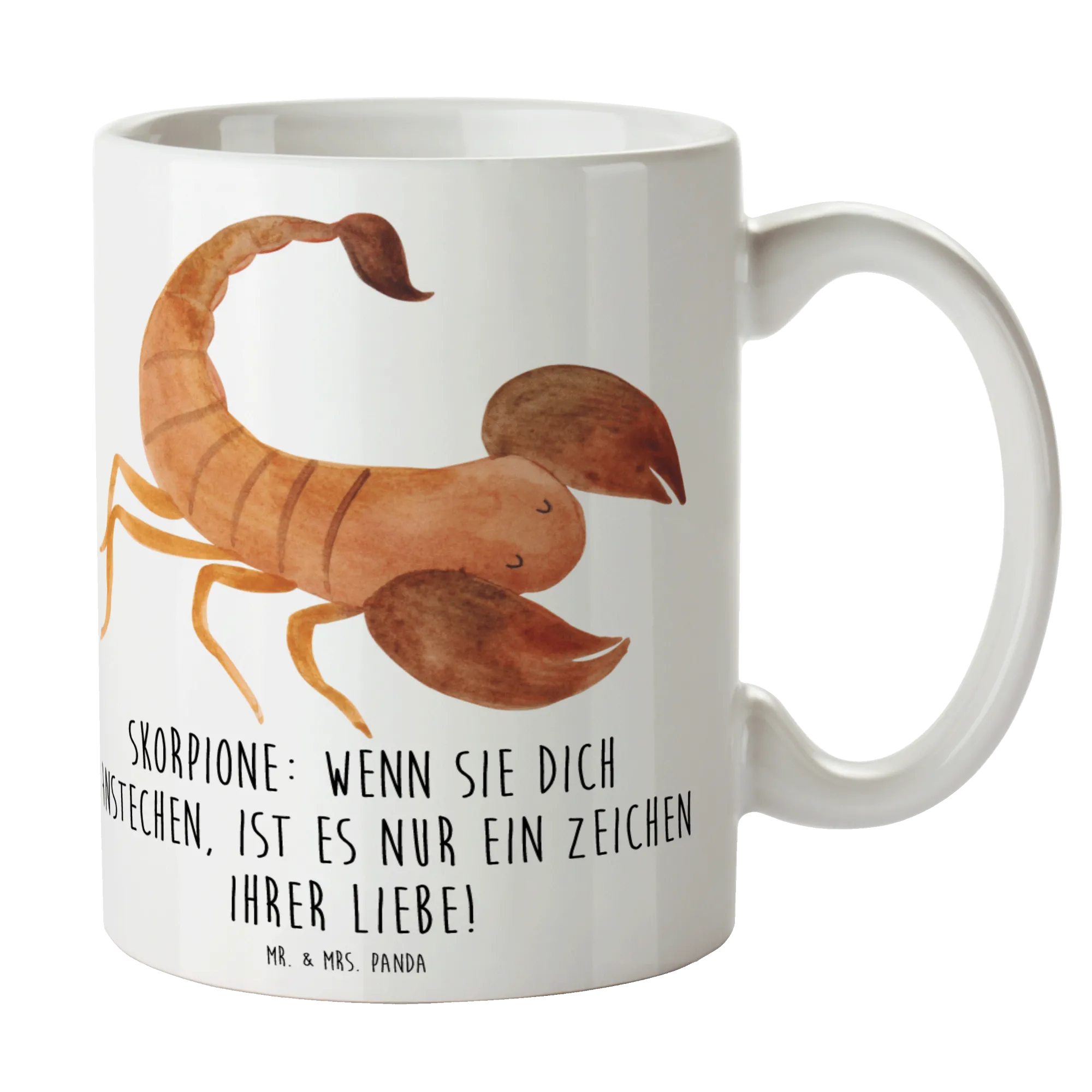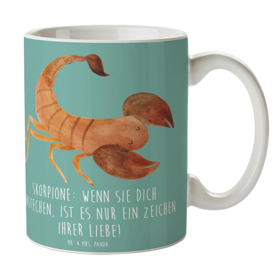 Suchst du ein persönliches, freches Geschenk für einen Skorpion? Unsere liebevoll gestaltete Skorpion Tasse aus der Sternzeichen Kollektion von Mr. & Mrs. Panda bringt Humor, Herz und Astrologie in jeden Alltag. Das handgezeichnete Aquarell-Motiv von Mrs. Panda kombiniert sich mit dem witzigen Spruch: „Skorpione: Wenn sie dich anstechen, ist es nur ein Zeichen ihrer Liebe!“ – perfekt für alle, die ihr Sternzeichen mit Stolz (und einem Augenzwinkern) zeigen möchten.