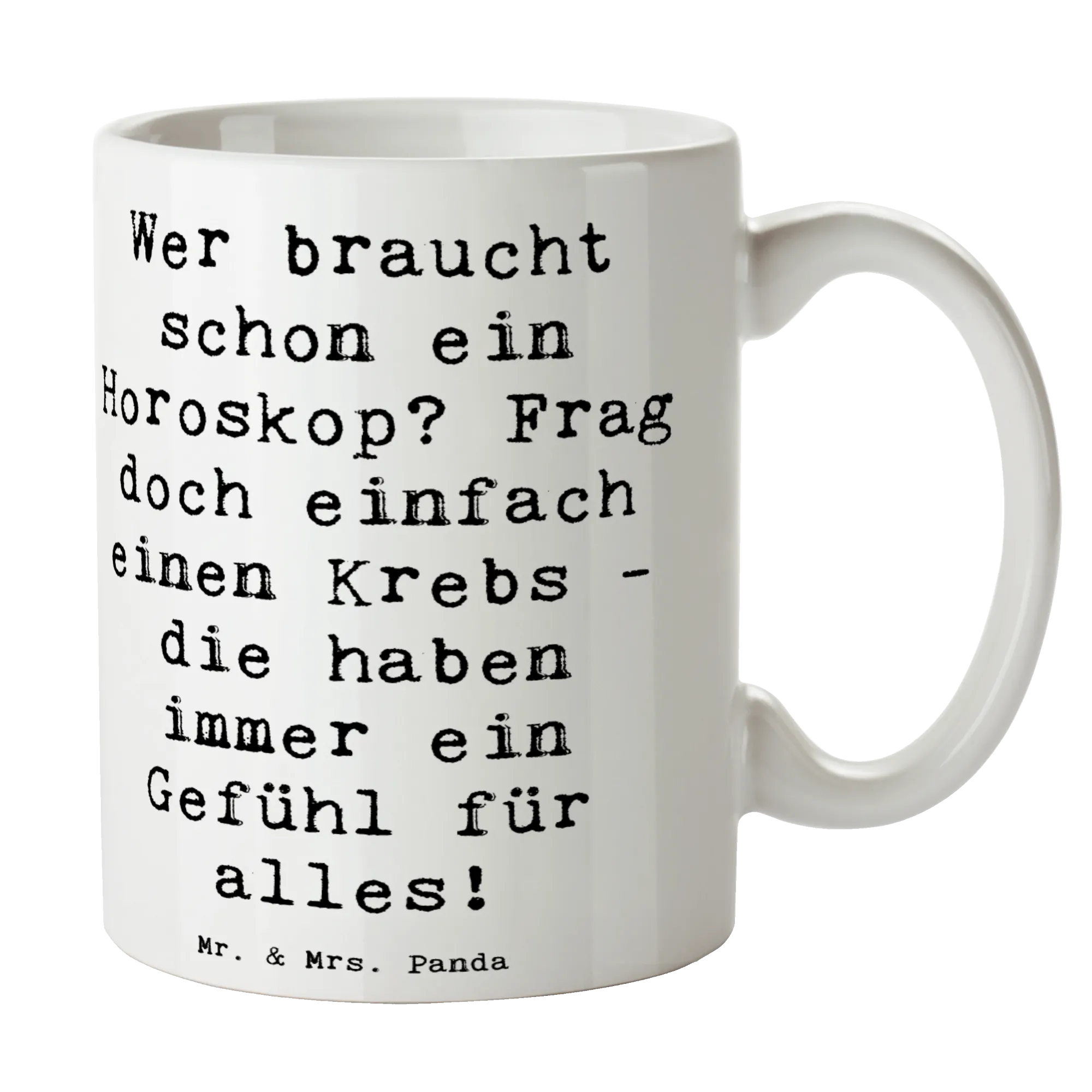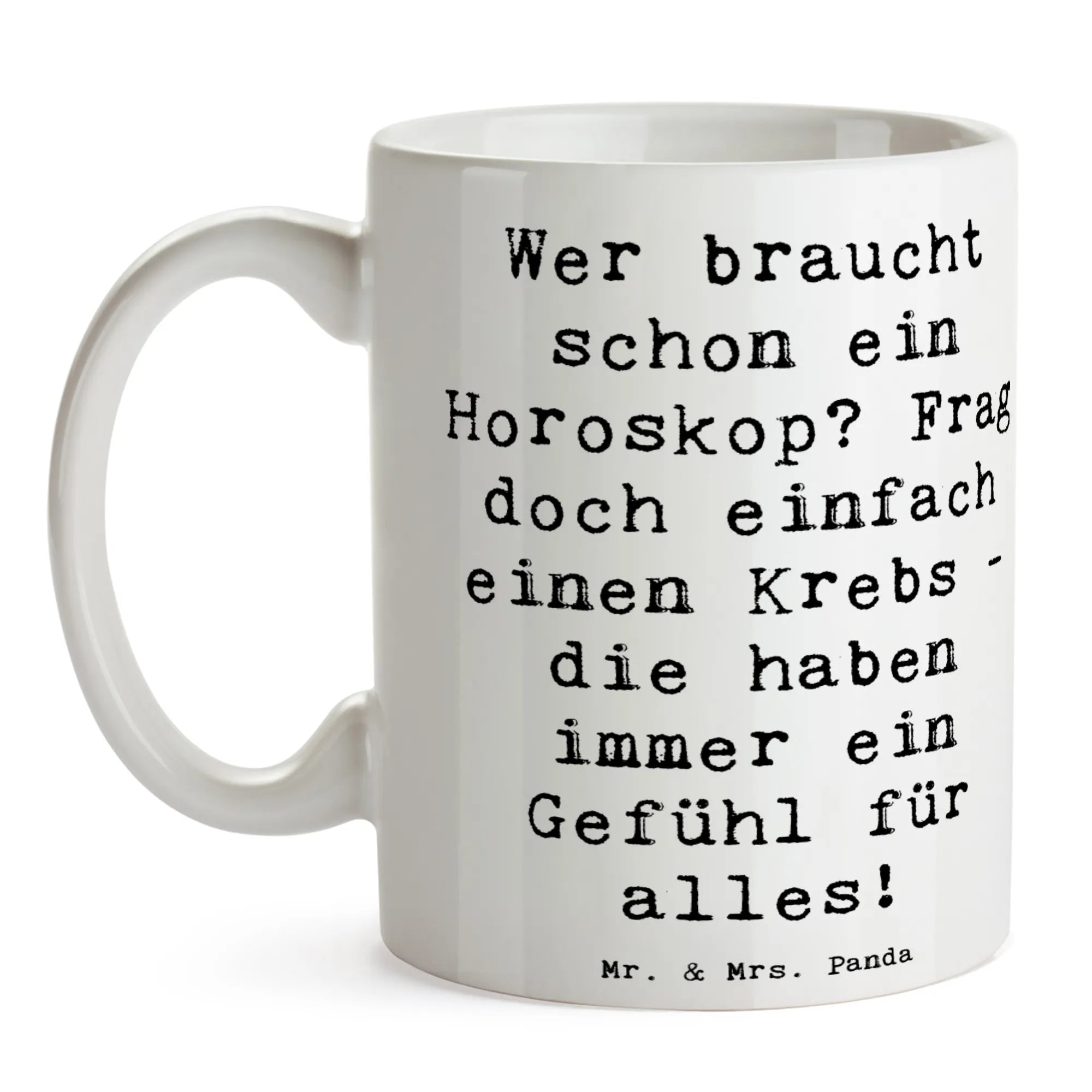 Mit dem liebevoll gestalteten Spruch: „Wer braucht schon ein Horoskop? Frag doch einfach einen Krebs - die haben immer ein Gefühl für alles!“ wird jeder Kaffeegenuss zu etwas ganz Besonderem.