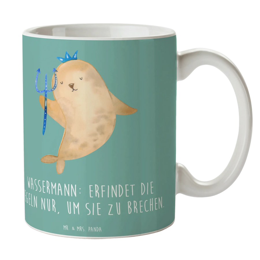 Die wunderschöne Keramiktasse Wassermann von Mr. & Mrs. Panda ist das perfekte Geschenk für alle, die mit dem Sternzeichen Wassermann verwachsen sind. Egal, ob du selbst ein Wassermann bist oder einem speziellen Menschen mit diesem Zeichen eine Freude machen möchtest, diese Tasse trifft den Nerv der Zeit! Mit einem charmanten Slogan "Wassermann: Erfindet die Regeln nur, um sie zu brechen." verbindet sie Humor mit dem einzigartigen Charakter des Wassermanns.