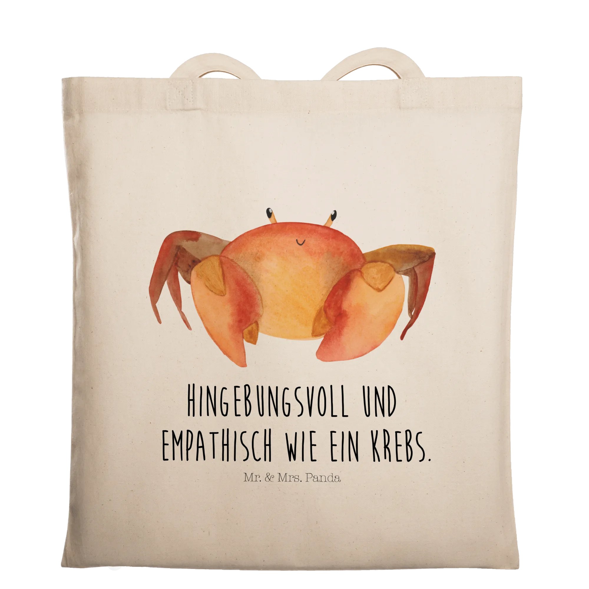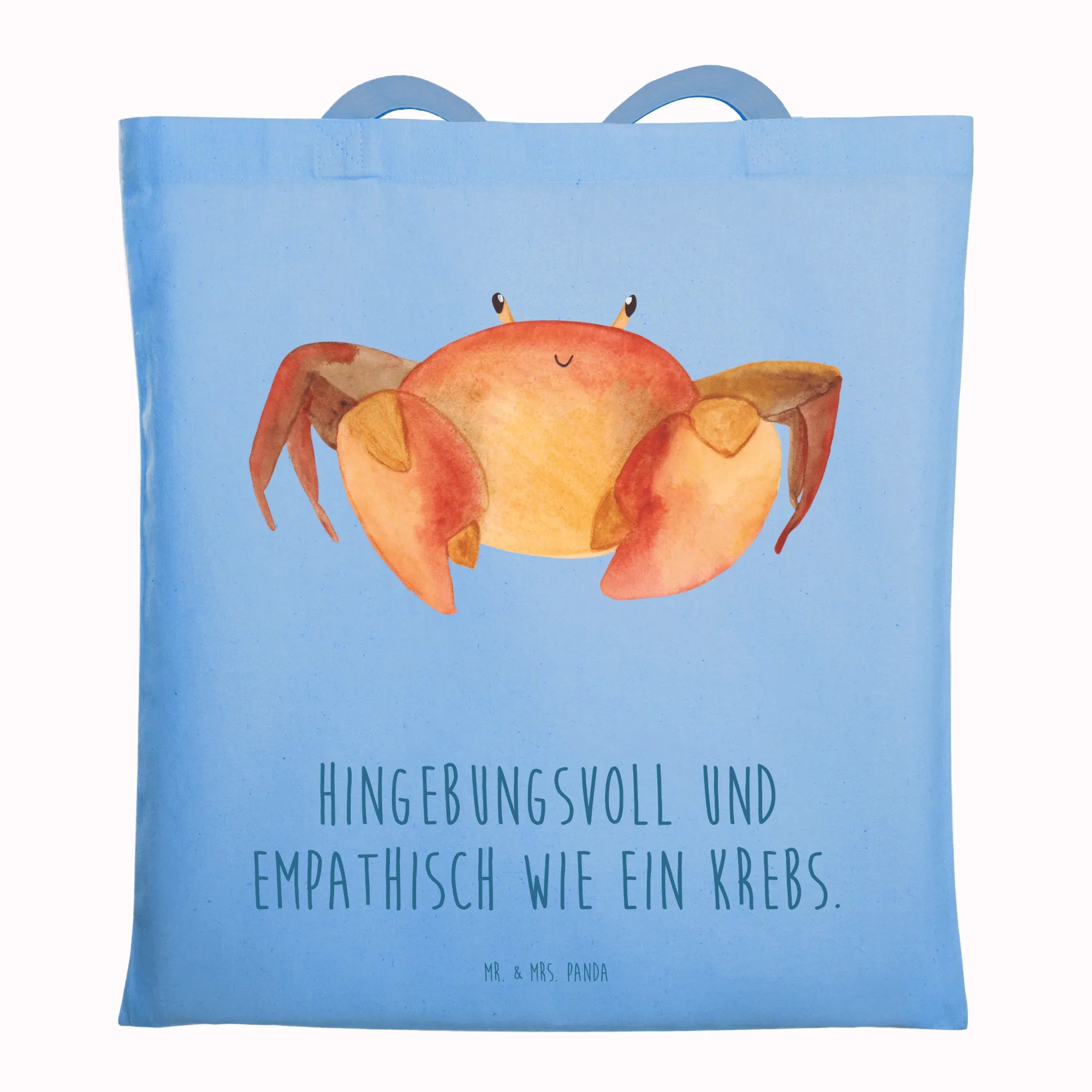 Eine wunderschöne Tragetasche von Mr. & Mrs. Panda – liebvoll gestaltet aus der Sternzeichen-Kollektion. Unser kleiner Krebs lächelt dich an: handgezeichnet, aquarelliert und mit dem Spruch „Hingebungsvoll und empathisch wie ein Krebs.“ Eine perfekte Kombination aus Charme und Persönlichkeit für alle, die im Juni oder Juli geboren sind oder das Meer und Astrologie lieben.
