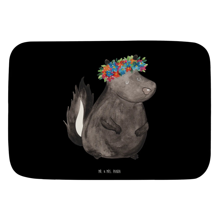 Der Badvorleger Stinktier Blumenmädchen von Mr. & Mrs. Panda ist das perfekte Geschenk für alle, die das Besondere im Alltag lieben! Stell dir vor, wie dieser wunderschöne Badteppich in Deinem Badezimmer erstrahlt.