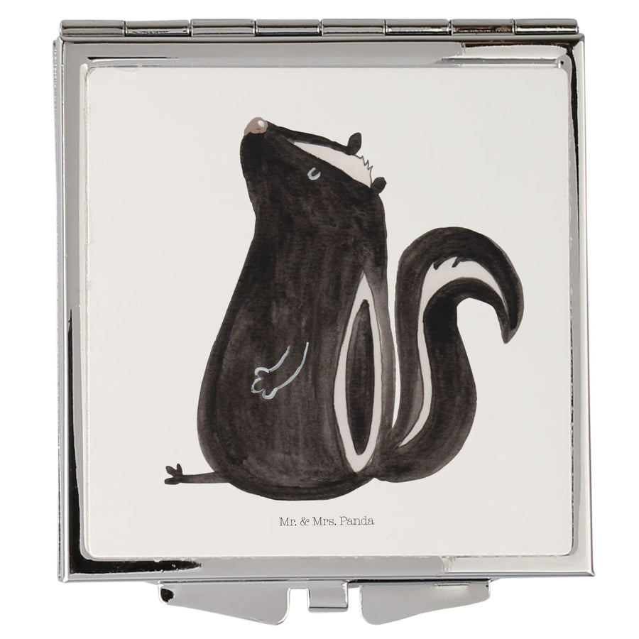 Handtaschenspiegel quadratisch Stinktier Sitzen - ohne Spruch - Weiß