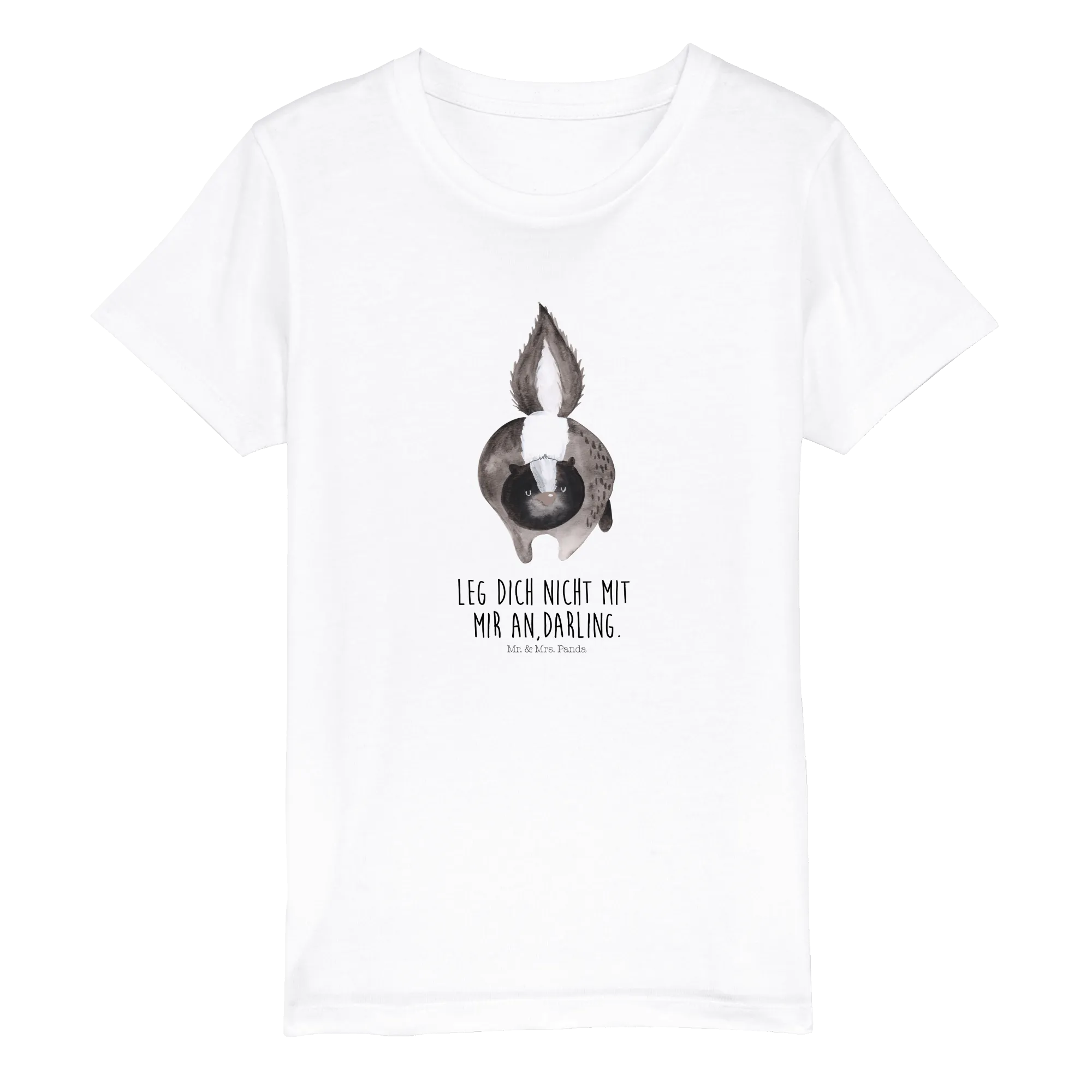 Wunderschönes Organic Kinder T-Shirt von Mr. & Mrs. Panda mit dem frechen Motiv „Stinktier Angriff“ aus unserer liebevollen Stinktier - Kollektion. Das Design kombiniert eine zarte Aquarell-Illustration mit dem frechen Slogan „Leg dich nicht mit mir an, Darling.“ und ist ideal für Kinder, die mit einem Augenzwinkern ihren Charakter zeigen möchten.