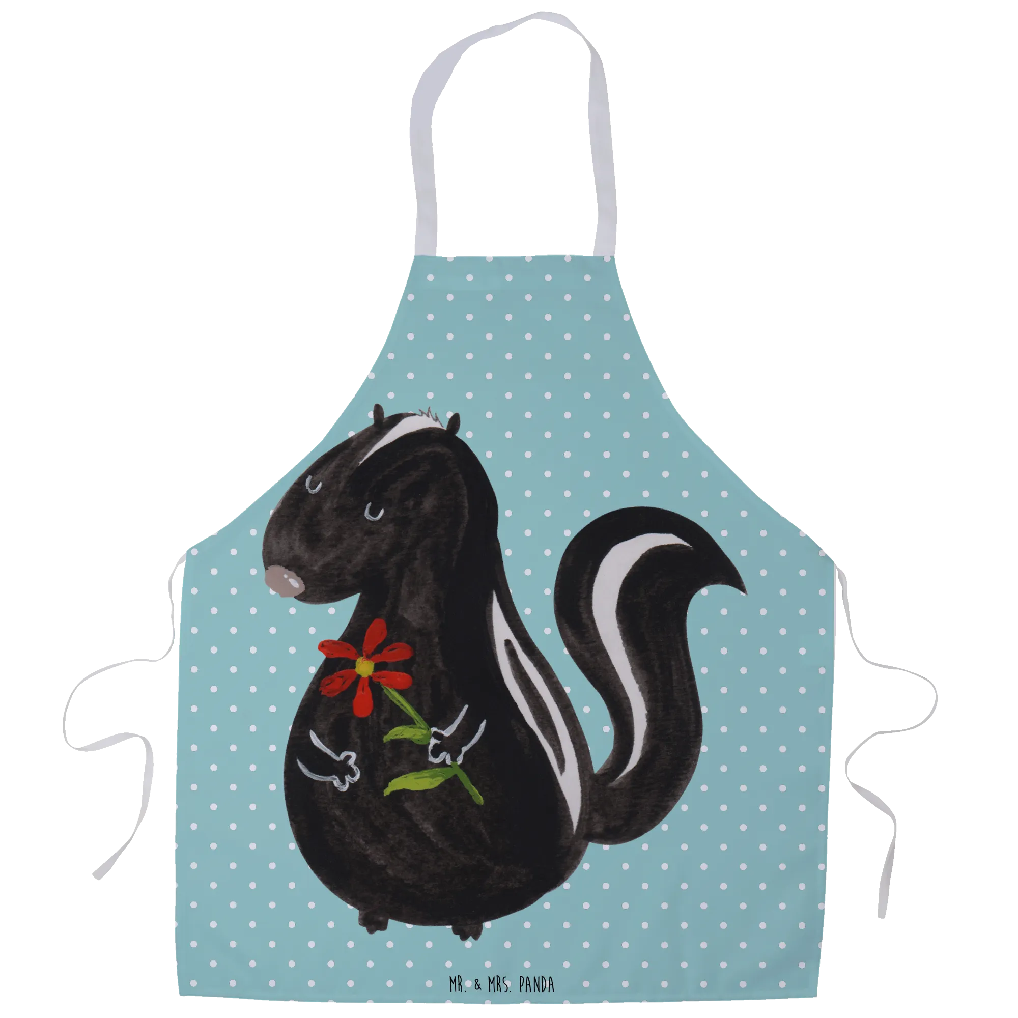 Entdecke die perfekte Kochschürze für alle Hobbyköche und Grillmeister! Diese bezaubernde Kochschürze mit dem stimmungsvollem Motiv "Stinktier Blume" aus der Stinktier-Kollektion von Mr. & Mrs. Panda ist nicht nur ein praktisches Küchenaccessoire, sondern auch ein echter Hingucker in deiner Küche oder beim Grillen.