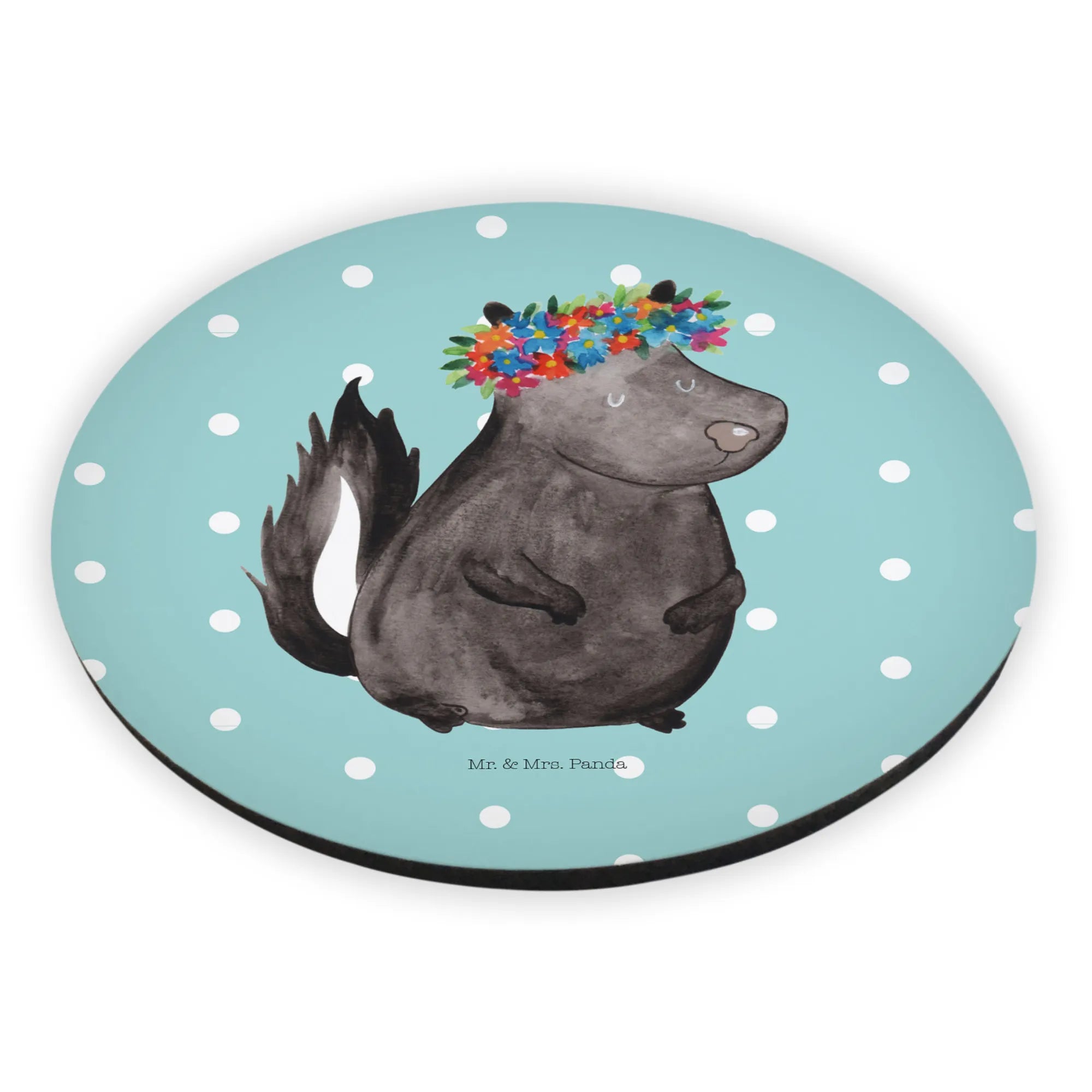 Entdecke den einzigartigen Rund Magnet "Stinktier Blumenmädchen" aus der Stinktier - Kollektion von Mr. & Mrs. Panda! Dieser entzückende Magnet ist mehr als nur ein hübsches Deko-Element – er ist ein Ausdruck von Lebensfreude und Naturverbundenheit.