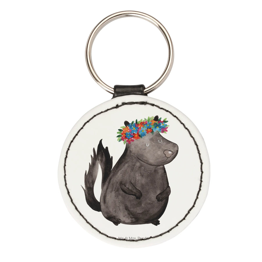 Rund Schlüsselanhänger Stinktier Blumenmaedchen - Weiß