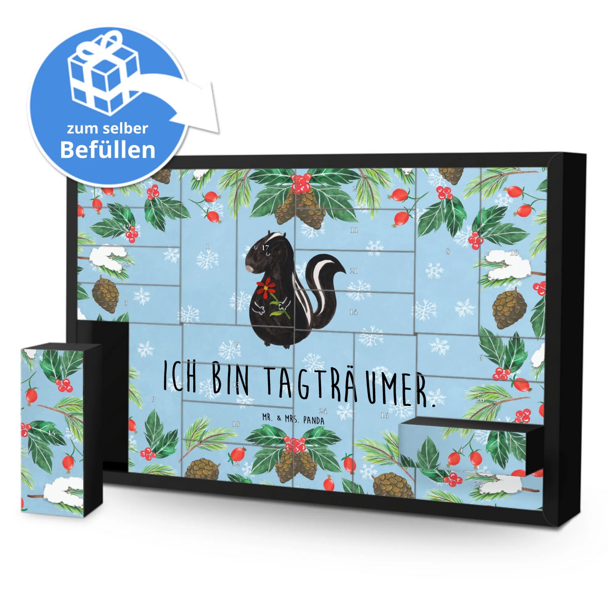 Der wunderschöne befüllbare Adventskalender von Mr. & Mrs. Panda mit dem niedlichen Motiv "Stinktier Blume" ist das perfekte Geschenk für alle, die zur Adventszeit etwas ganz Besonderes und Persönliches schaffen möchten.