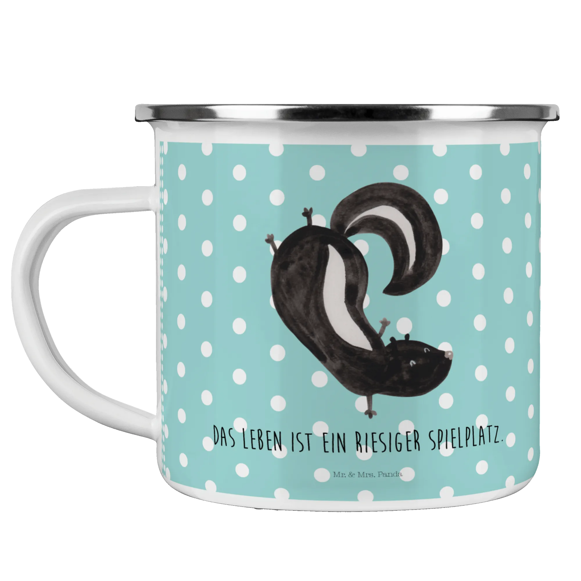 Du liebst die Natur und möchtest jeden Moment im Freien in vollen Zügen genießen? Dann ist die Camping Emaille Tasse mit dem niedlichen Stinktier Handstand Motiv von Mr. & Mrs. Panda genau das richtige für dich!
