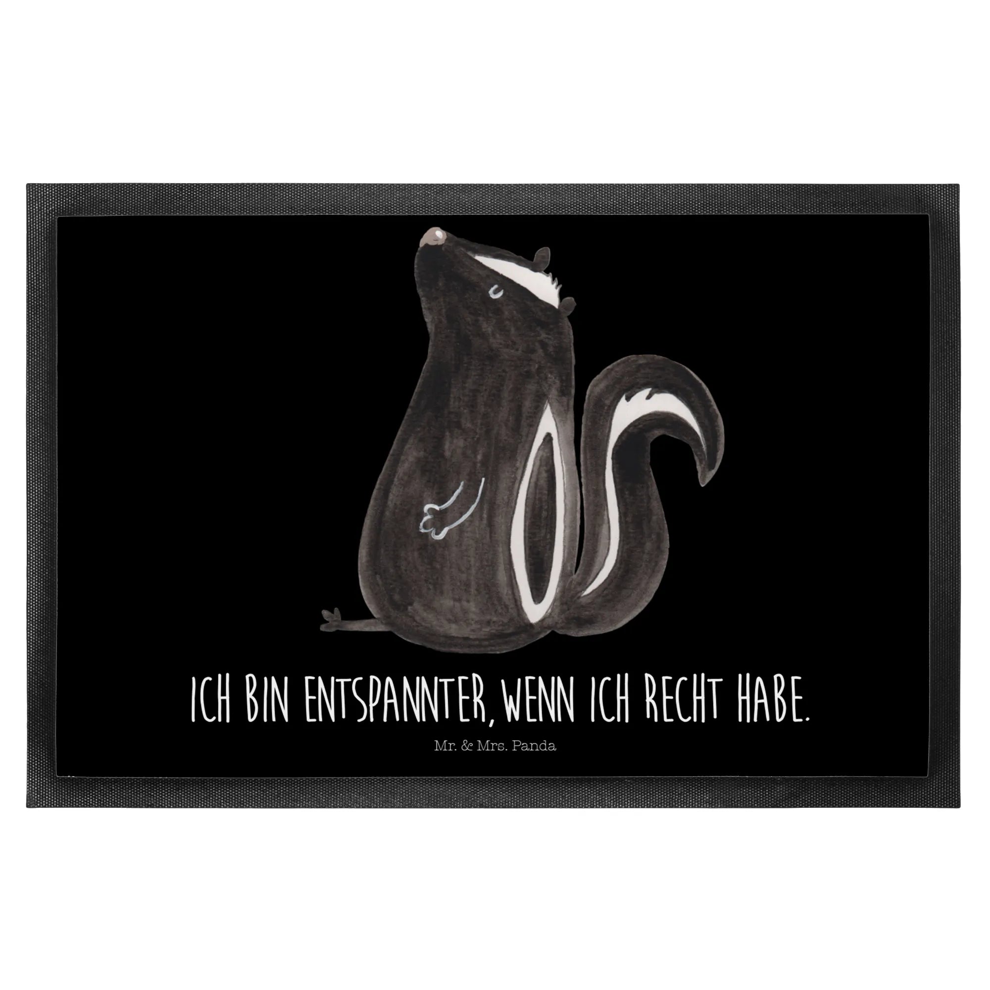 Die Fußmatte mit dem süßen, sitzenden Stinktiermotiv aus der Stinktier-Kollektion von Mr. & Mrs. Panda ist nicht nur ein praktischer Begleiter für deinen Eingangsbereich, sondern auch ein wunderbares Dekorationsstück. Die Matte ist gedruckt mit einem charmanten Aquarell-Stinktier, das zufrieden in seiner Pose sitzt und mit dem Spruch "Ich bin entspannter, wenn ich Recht habe." überzeugt. Durch ihre fröhlichen Farben und das liebevolle Design wird sie Gäste sofort erfreuen und deinen Eingangsbereich aufhellen.