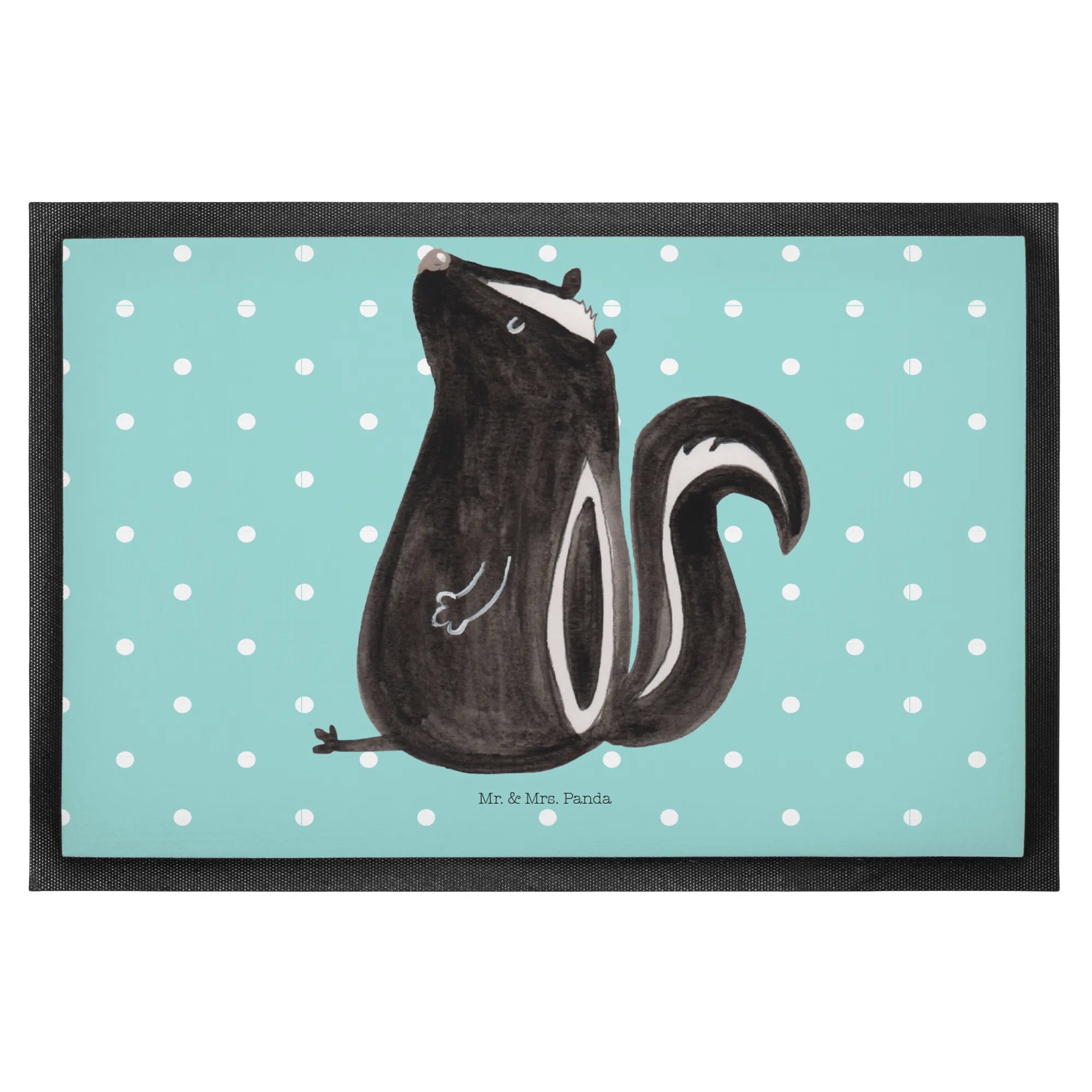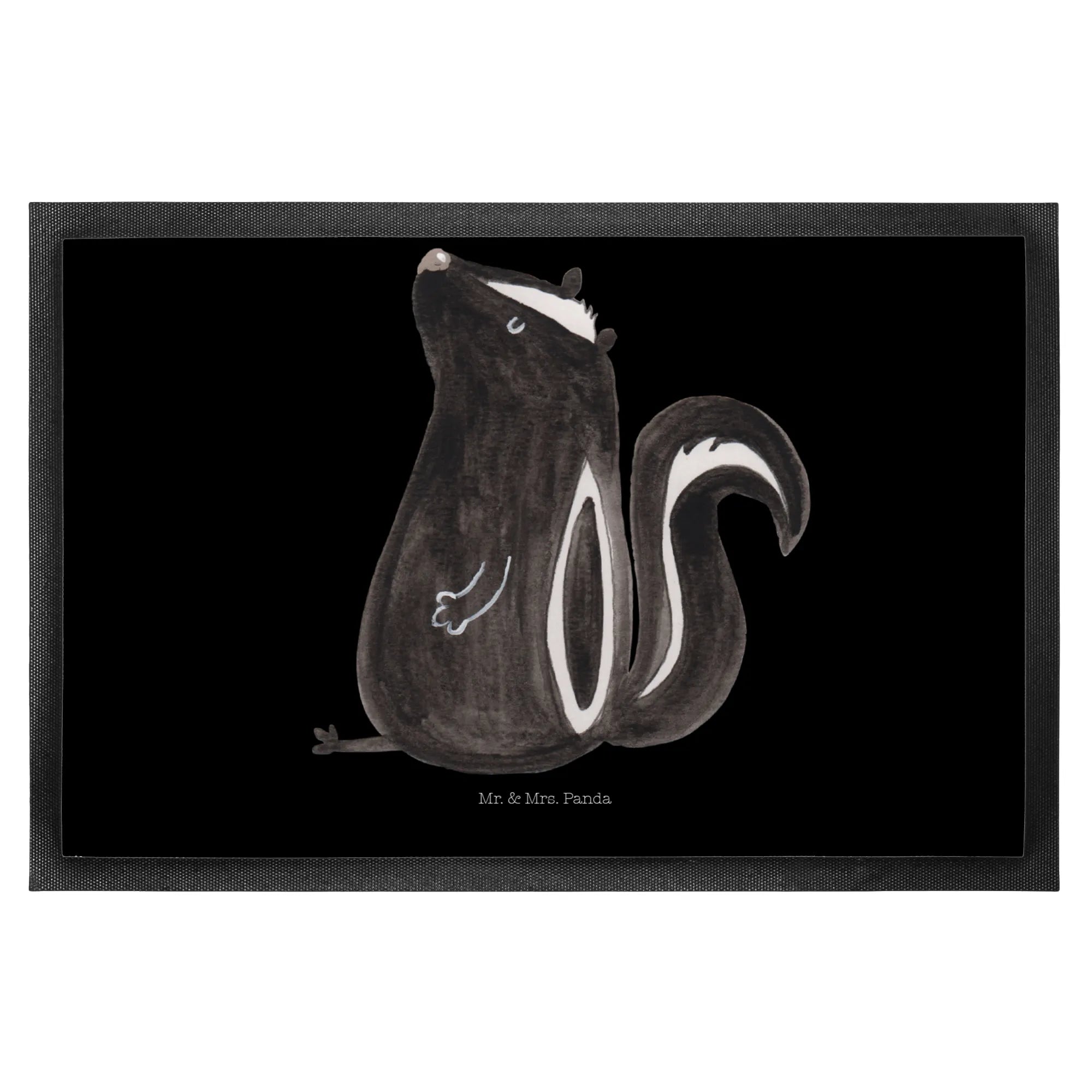 Die Fußmatte mit dem süßen, sitzenden Stinktier aus der Stinktier-Kollektion von Mr. & Mrs. Panda ist der perfekte Begleiter für jeden Eingangsbereich. Ob für dein Zuhause oder als Geschenk für Freunde und Familie, diese hochwertige Schmutzmatte ist sowohl praktisch als auch ein echter Hingucker. Der robuste Polyesterfilz auf der Vorderseite sorgt dafür, dass Schmutz und Staub zuverlässig aufgefangen werden, während die gummierte Rückseite für sicheren Halt sorgt. Mit den Maßen von 60 x 90 cm passt sie ideal vor jede Haustür.