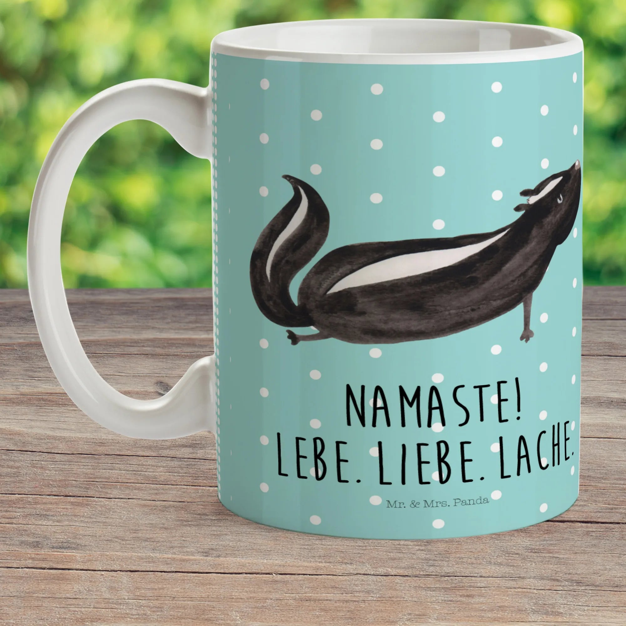 Die farbenfrohe Kindertasse mit dem bezaubernden Stinktier Yoga-Motiv aus der Stinktier-Kollektion von Mr. & Mrs. Panda ist das perfekte Geschenk für alle kleinen Abenteurer und Yoga-Liebhaber!