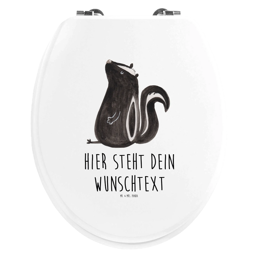Entdecke den perfekten personalisierten WC Sitz mit dem niedlichen Motiv des sitzenden Stinktiers aus der Stinktier - Kollektion von Mr. & Mrs. Panda! Dieser Toilettendeckel ist nicht nur ein praktisches Accessoire für dein Badezimmer, sondern auch eine charmante Möglichkeit, deinem persönlichen Stil Ausdruck zu verleihen.