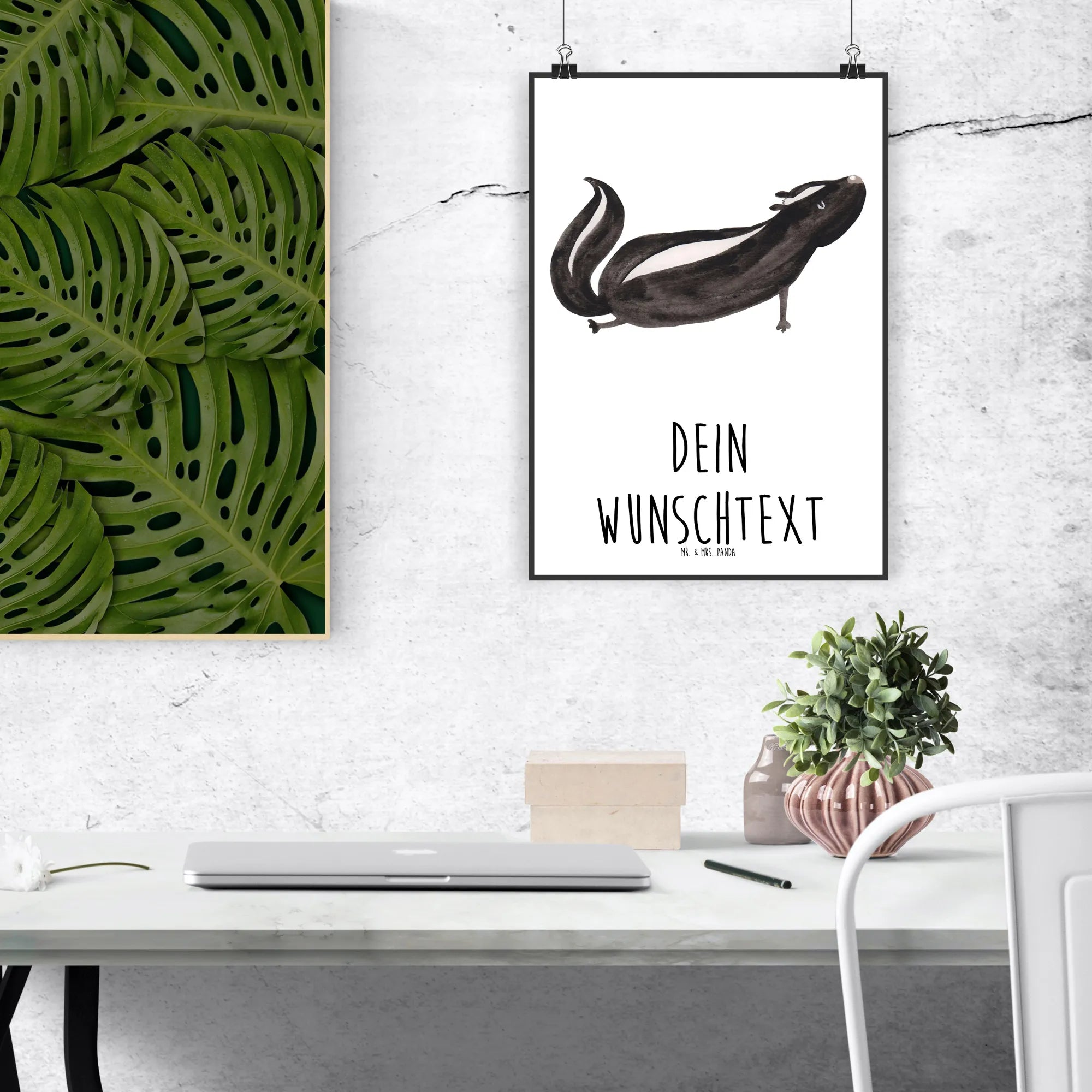Entdecke das personalisierte Poster "Stinktier Yoga" aus der bezaubernden Stinktier-Kollektion von Mr. & Mrs. Panda. Dieses wundervolle Wandposter ist nicht nur eine originelle Wanddekoration, sondern auch eine liebevolle Erinnerung an den eigenen Rückzugsort für Yoga und Entspannung.