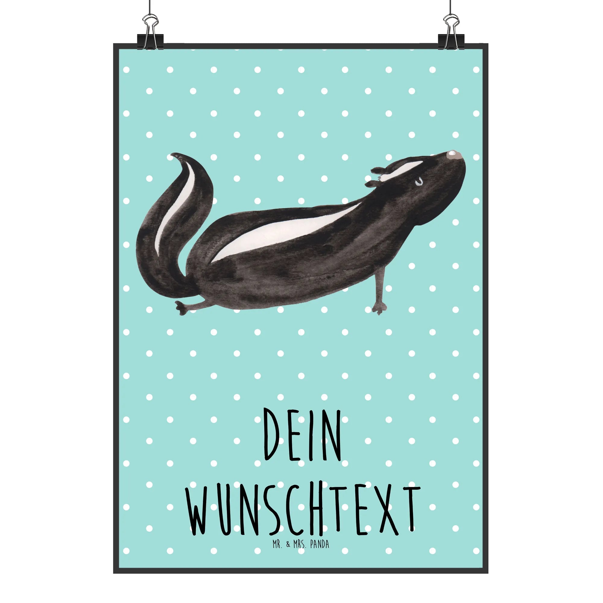 Das personalisierte Poster "Stinktier Yoga" von Mr. & Mrs. Panda ist mehr als nur ein schöner Wandschmuck; es ist eine Einladung, das Leben mit Leichtigkeit und Freude zu genießen.