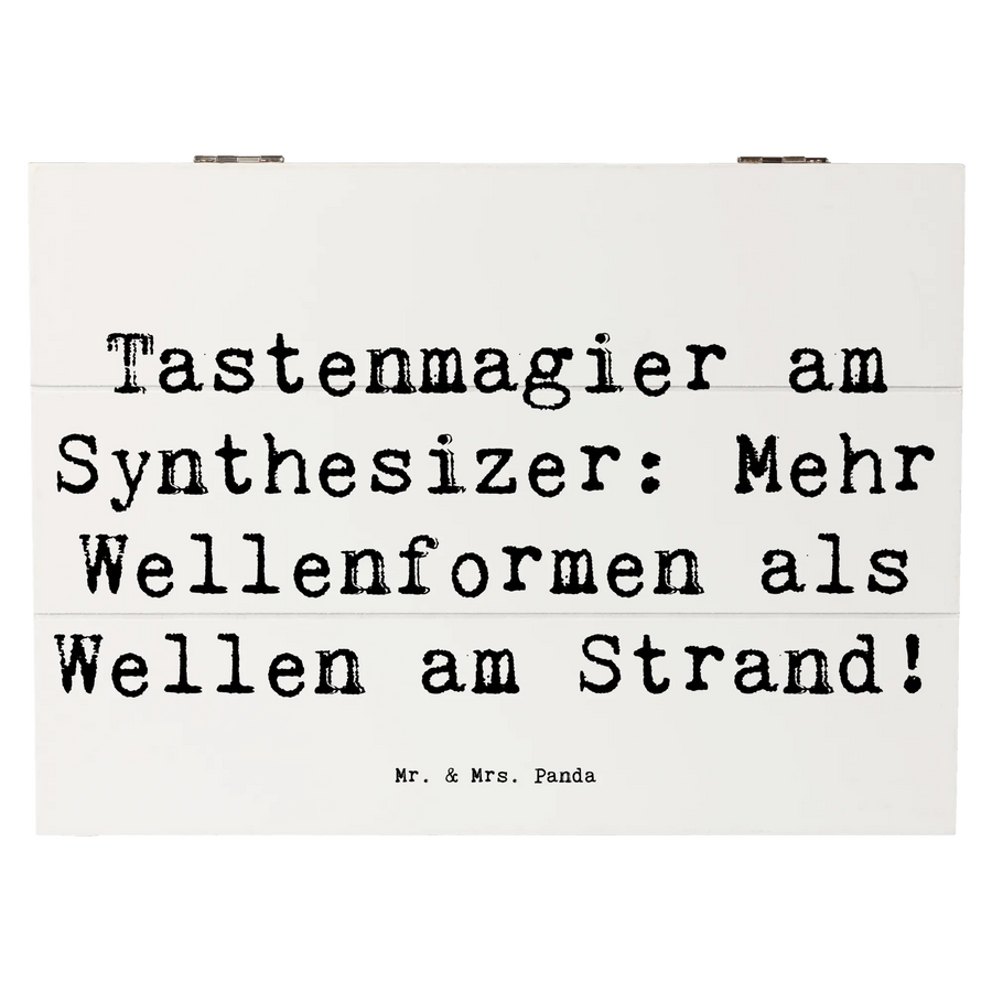 Die wunderschöne Holzkiste von Mr. & Mrs. Panda ist das perfekte Geschenk für Musikliebhaber, die mit einem Synthesizer die Welt der Klänge entdecken möchten. Diese Erinnerungskiste, bedruckt mit dem witzigen Slogan "Tastenmagier am Synthesizer: Mehr Wellenformen als Wellen am Strand!", bietet nicht nur Platz für deine wertvollen Schätze wie Fotos, Briefe oder Andenken, sondern bringt auch ein bisschen Musik und Kreativität in dein Leben.