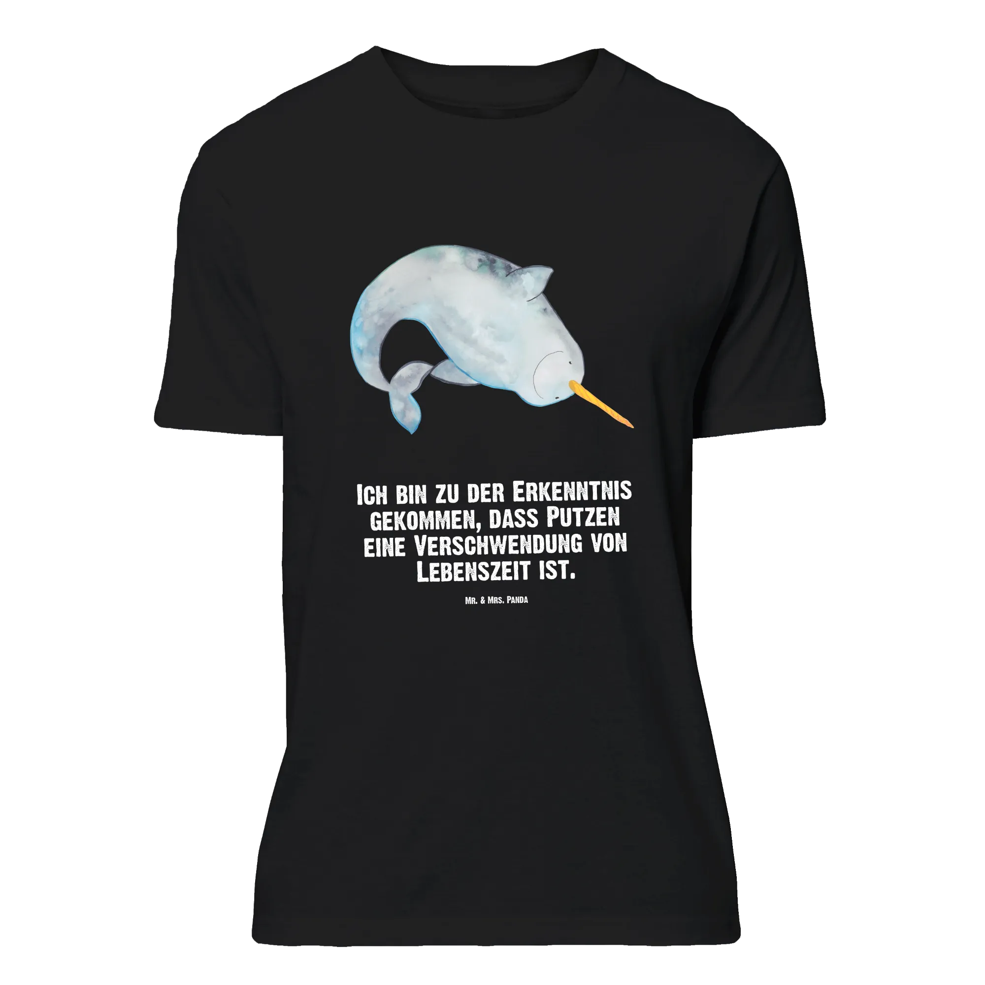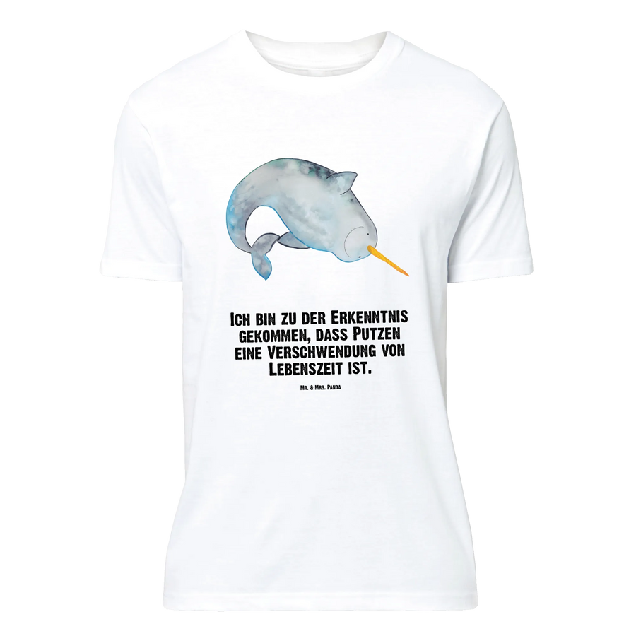 Mit seiner sanften Erscheinung und dem verspielten Spruch 'Ich bin zu der Erkenntnis gekommen, dass Putzen eine Verschwendung von Lebenszeit ist', lehrt uns der Narwal, wie wichtig es ist, die Zeit, die wir haben, sinnvoll zu nutzen. Es gibt so viele Dinge, die mehr Aufmerksamkeit verdienen als das Putzen. Warum nicht die Schönheit der Natur oder das Lächeln eines geliebten Menschen genießen? Unsere Zeit sollte mit Freude gefüllt sein, anstatt in putzenden Gedanken gefangen zu sein. Lass uns gemeinsam die kleinen Freuden des Lebens feiern und dabei ein bisschen entspannter umgehen.