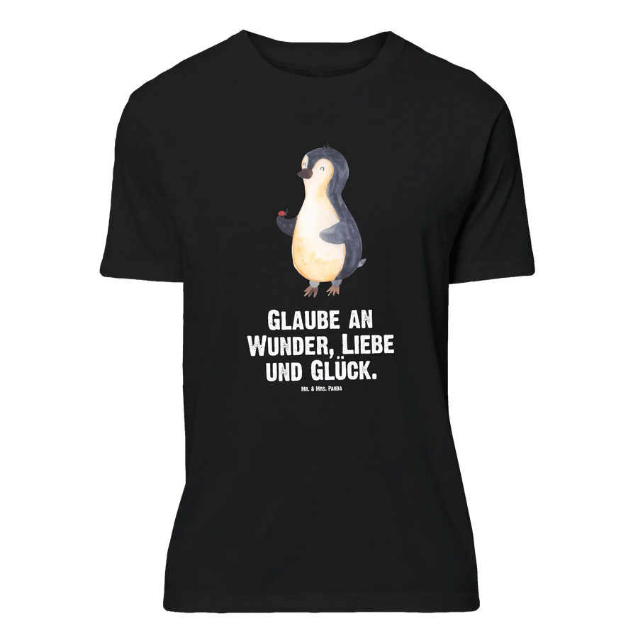 Das Größe L T-Shirt mit dem süßen Pinguin Marienkäfer aus der Pinguin - Kollektion von Mr. & Mrs. Panda ist das perfekte Geschenk für alle, die die kleinen Wunder des Lebens lieben. Ob zum Junggesellenabschied, Jubiläum oder einfach als witziges Geburtstagsgeschenk, dieses T-Shirt zaubert jedem ein Lächeln ins Gesicht. Das fröhliche Motiv zeigt einen niedlichen Pinguin, der stolz einen Marienkäfer auf seiner Flosse trägt. Dieser Blickfang ist nicht nur für die tristen Alltagsmomente gedacht, sondern auch für besondere Anlässe. Der Spruch in der Kollektion "Glaube an Wunder, Liebe und Glück" bringt die Message auf den Punkt, dass Freude und Optimismus jeder Situation einen besonderen Glanz verleihen.