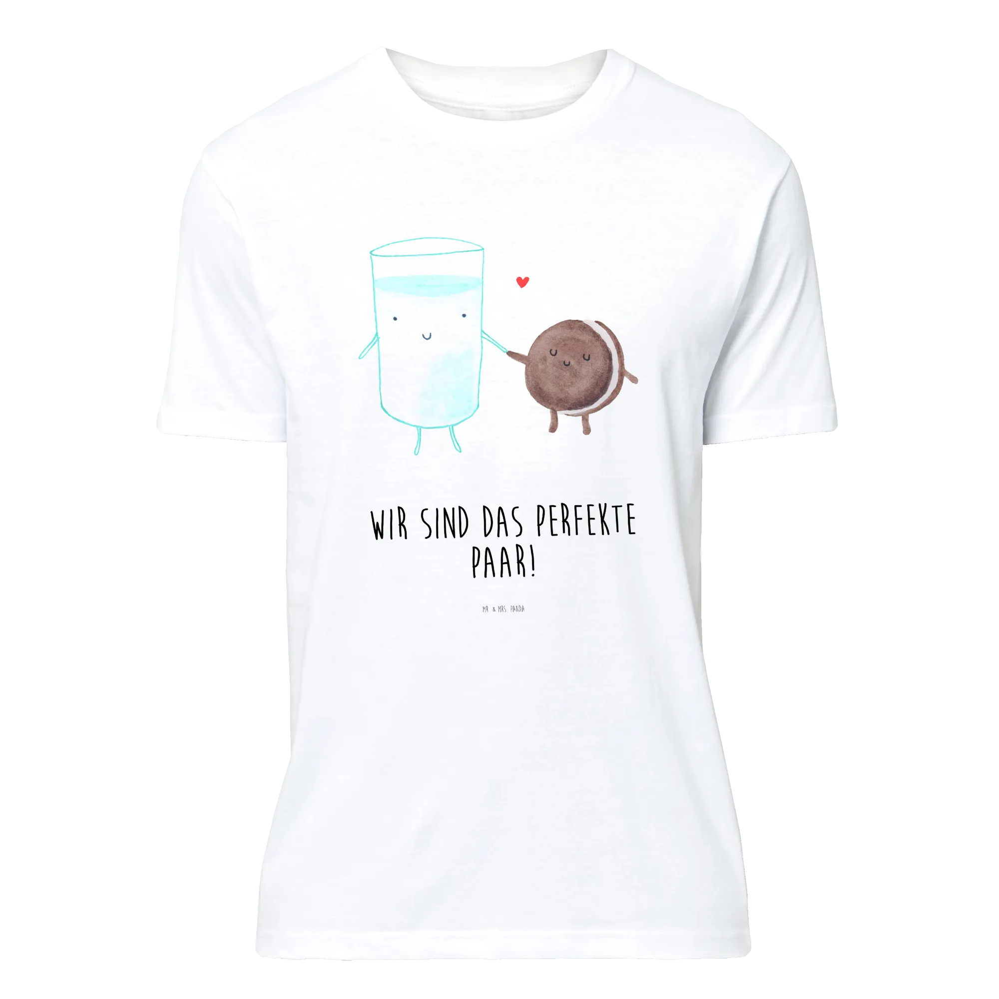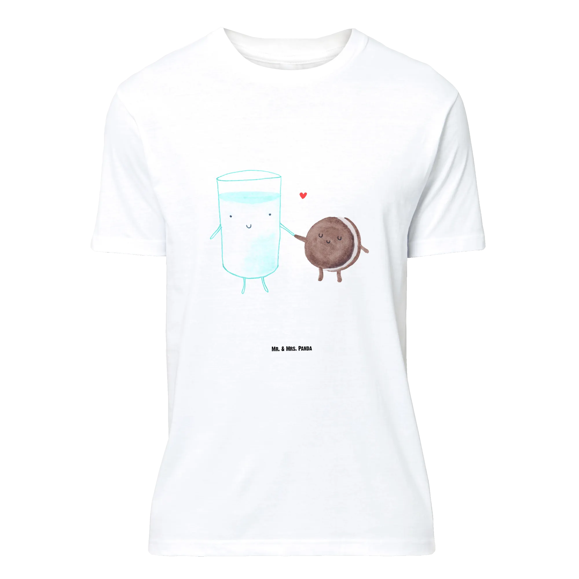 Das Größe S T-Shirt mit dem süßen Motiv "Milch & Keks" von Mr. & Mrs. Panda ist das perfekte Geschenk für Naschkatzen und Liebhaber des süßen Lebensstils! Mit einem bezaubernden Design, das ein Glas Milch und einen Keks zeigt, die Händchen halten, zaubert dieses T-Shirt jedem ein Lächeln ins Gesicht.