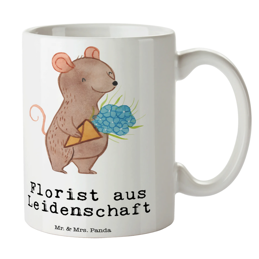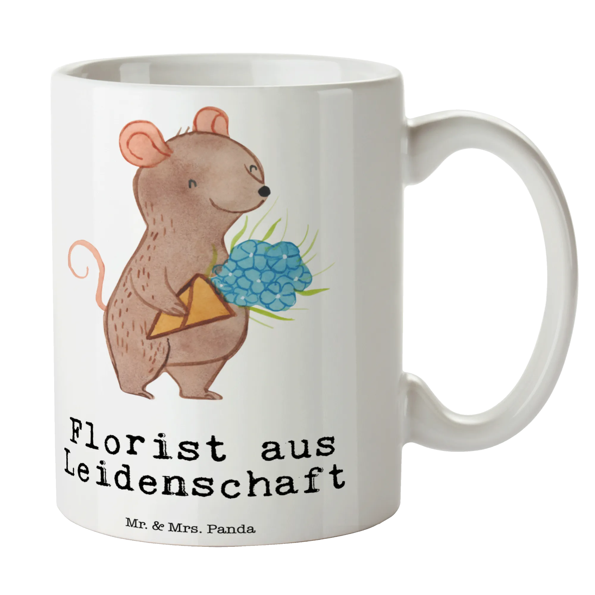 Die Tasse "Florist aus Leidenschaft" von Mr. & Mrs. Panda ist das perfekte Geschenk für jeden, der in der floralen Welt zu Hause ist! Wenn du einen lieben Floristen kennst, der mit seinem grünen Daumen begeistert, ist diese wunderschöne, spülmaschinenfeste Keramiktasse genau das Richtige.