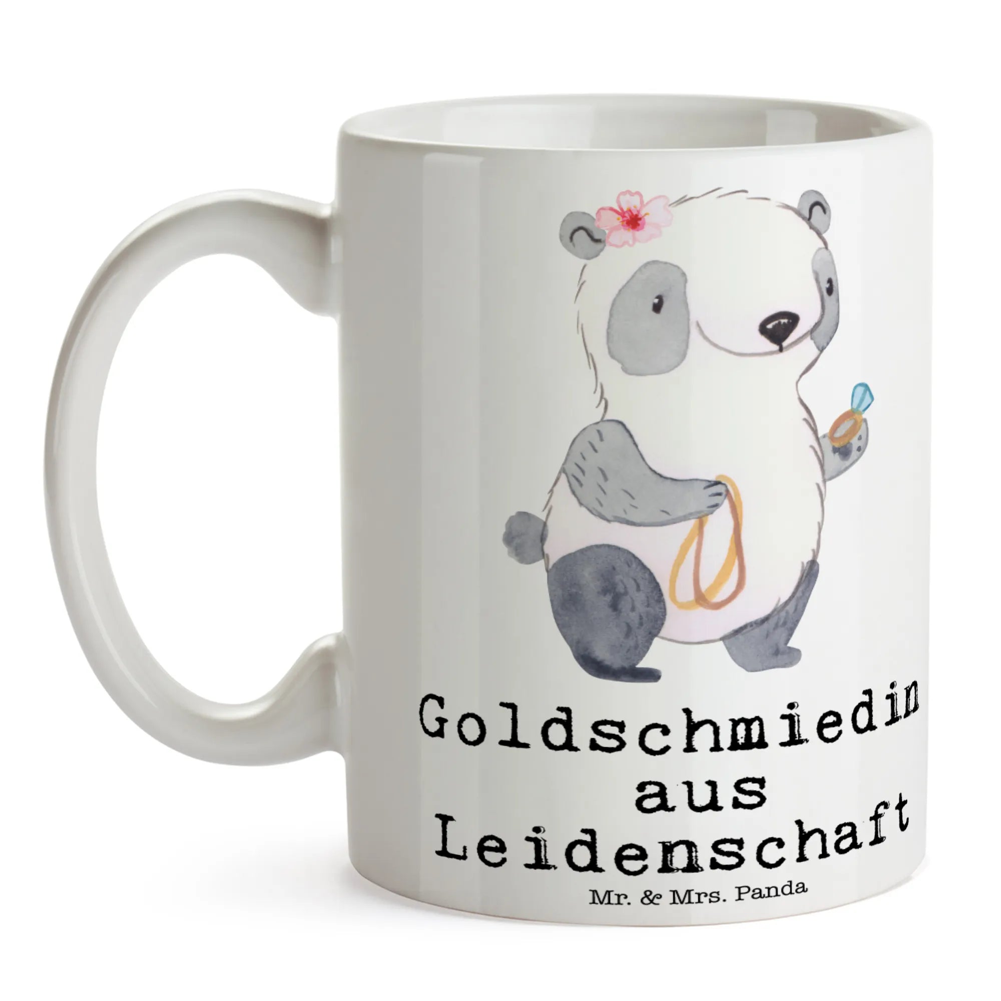 Die "Goldschmiedin aus Leidenschaft" Tasse von Mr. & Mrs. Panda ist mehr als nur eine Tasse – sie erzählt eine Geschichte, verkörpert eine Leidenschaft und ist ein liebevolles Geschenk für alle, die das Handwerk des Goldschmiedens schätzen! Mache deinen Liebsten eine Freude und bringe ein wenig Panda-Charme in ihren Alltag!