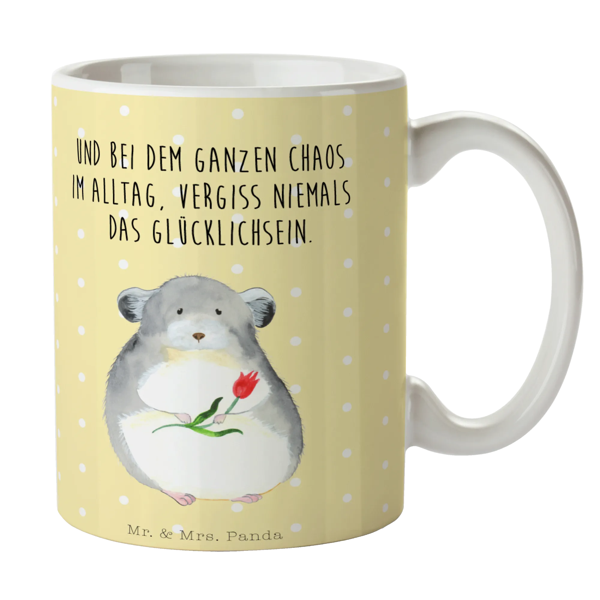 Tasse Chinchilla Blume - mit Spruch - Keramik - Gelb Pastell